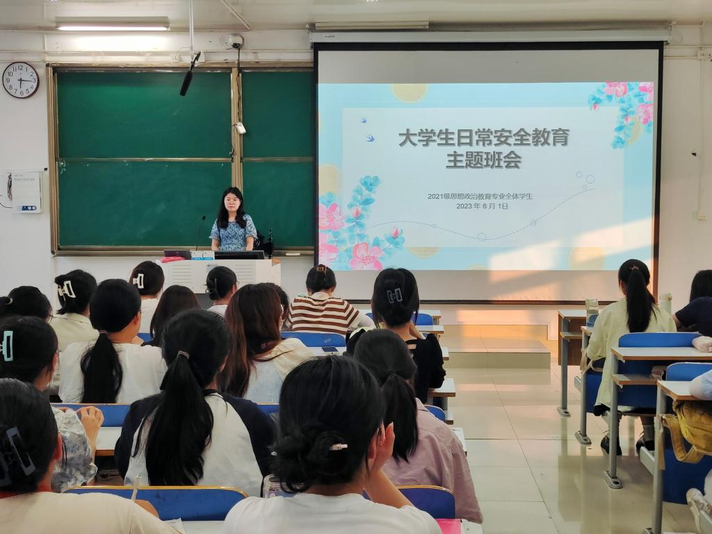 6月1日下午,永利集团官网2021级思想政治教育三班、四班在社科楼514教室召开“大学生日常安全教育”主题班会。辅导员高小佳、永利集团官网2021级思想政治教育三班、四班全体成员参与此次会议。会议由辅导员高小佳主持。
