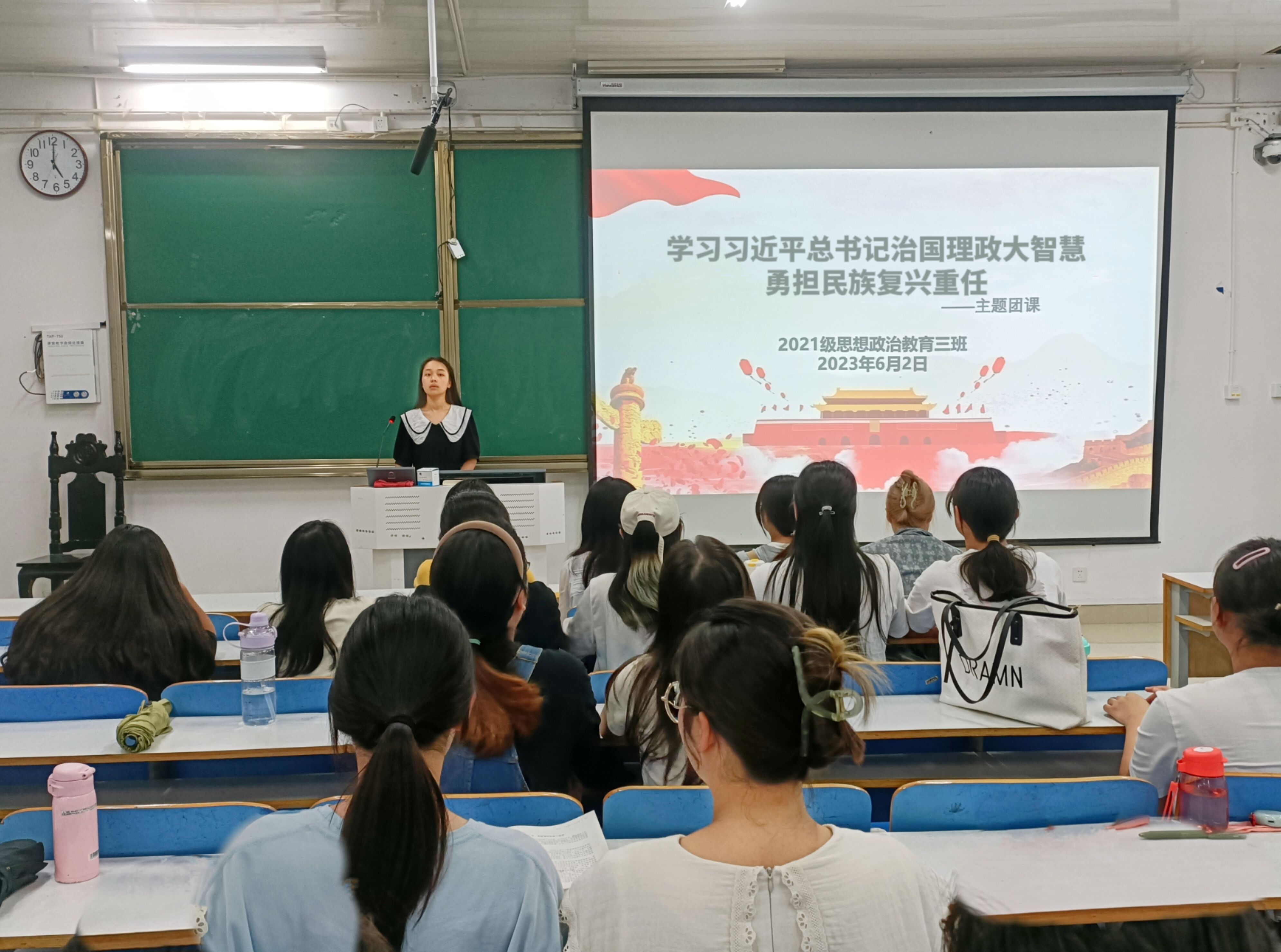 6月2日下午,永利集团官网2021级思想政治教育三班在社科楼514教室召开“学习习近平总书记治国理政大智慧,勇担民族复兴重任”主题团课。永利集团官网2021级思想政治教育三班全体团员参与此次会议。会议由团支书王岚霄主持。