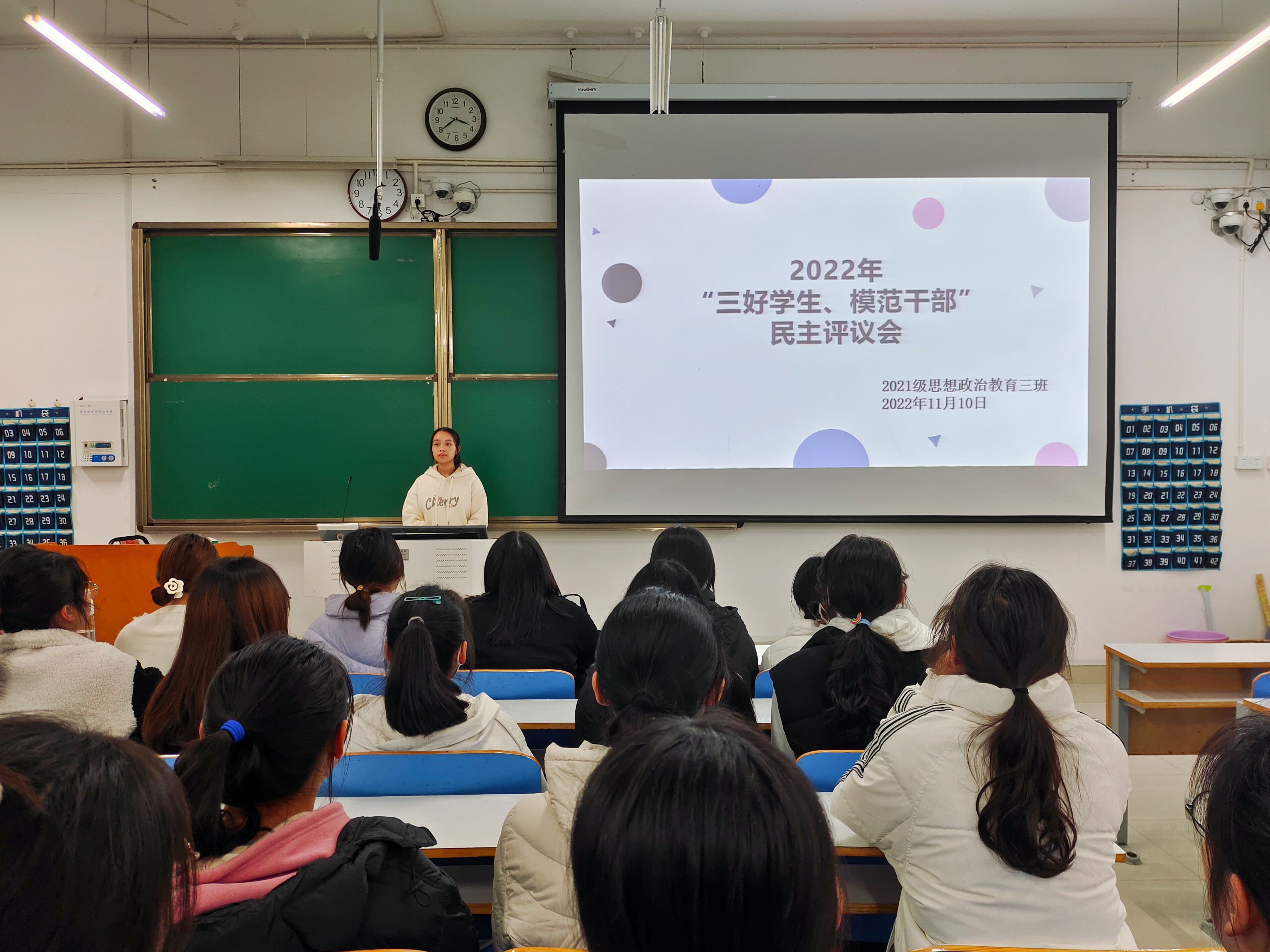 11月10日下午,永利集团官网2021级思想政治教育三班在社科楼514召开2022年“三好学生、模范干部”民主评议会。永利集团官网2021级思想政治教育三班全体成员参与此次会议。会议由团支书王岚霄主持,王岚霄任检票员,陈笑宇任记录员。