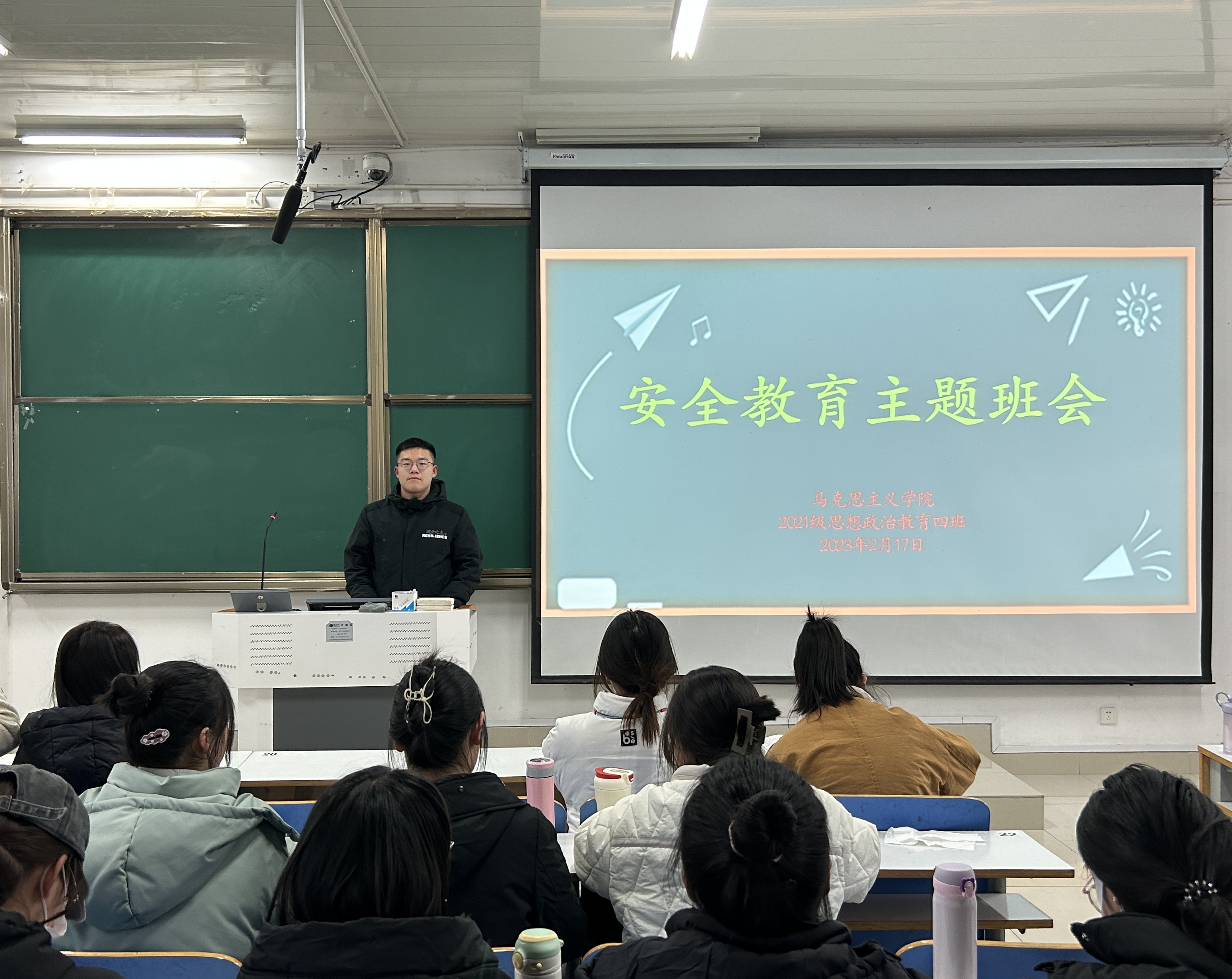 2月17日下午,永利集团官网2021级思想政治教育四班在社科楼514教室开展安全教育主题班会。2021级思想政治教育四班全体同学共同参会。班会由副班长常康哲主持。