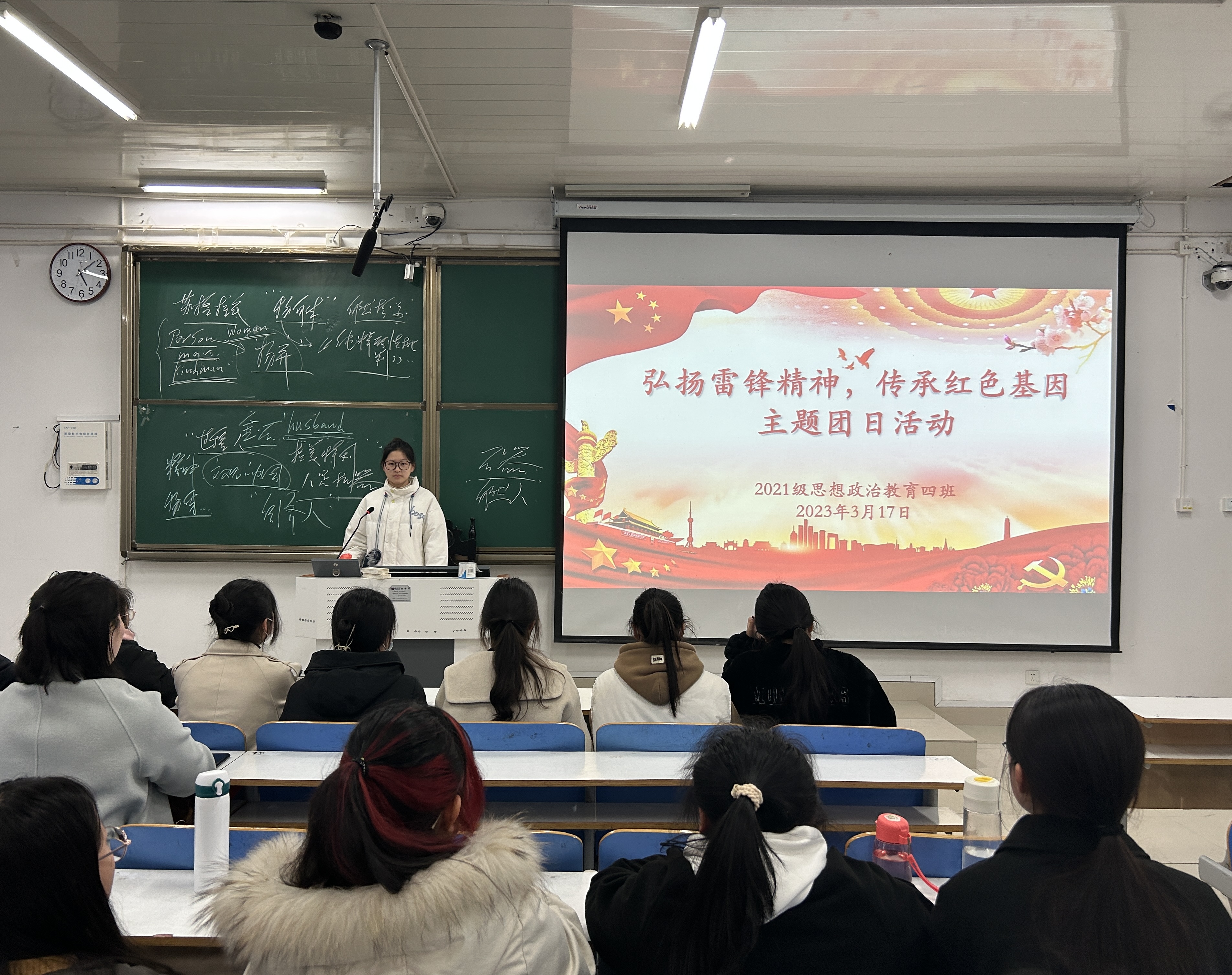为大力弘扬雷锋精神,传承雷锋艰苦朴素的优良作风,3月17日下午,永利集团官网2021级思想政治教育四班在社科楼514教室开展“弘扬雷锋精神,传承红色基因”主题团日活动。2021级思想政治教育四班全体成员共同参加本次活动,活动由团支书刘珂含主持。