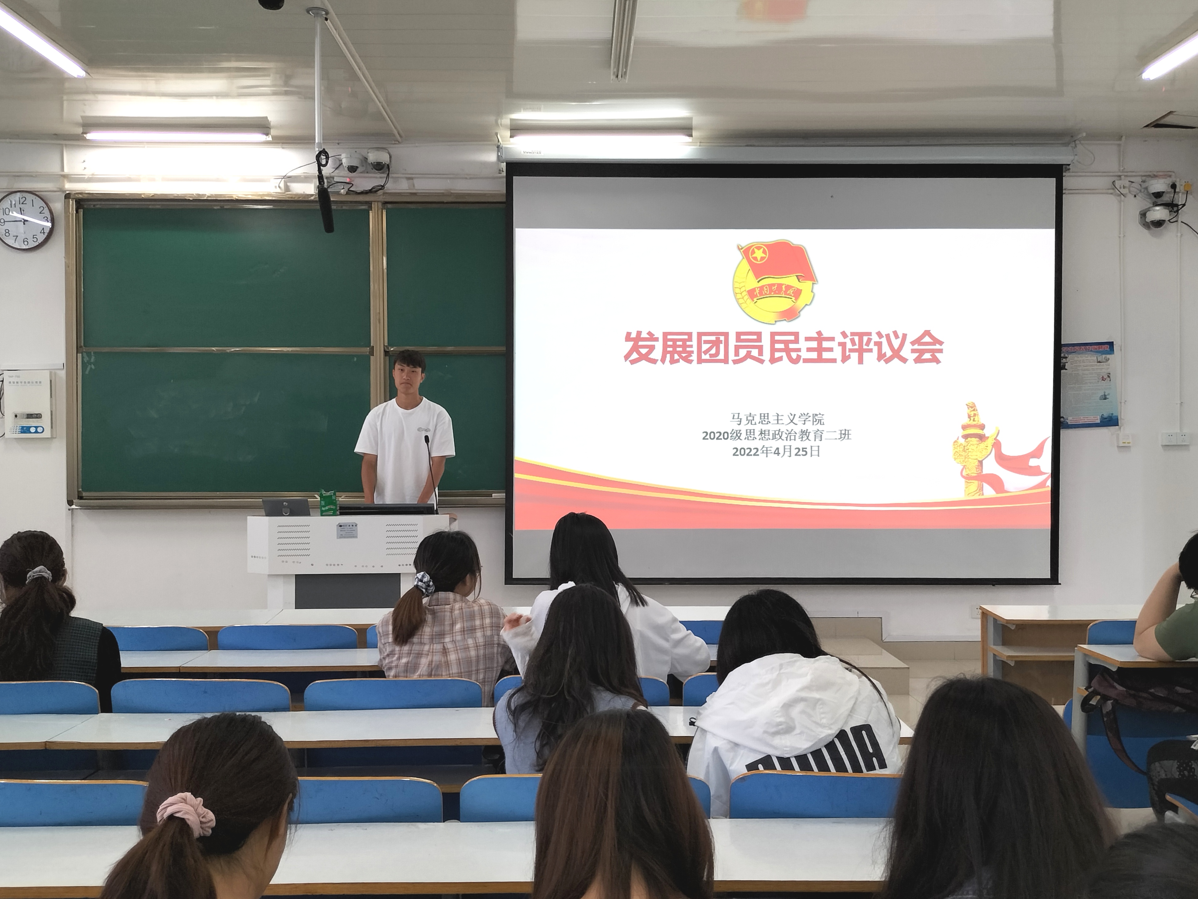 为进一步发展壮大团员队伍,为团支部注入新鲜血液,4月25日上午,永利集团官网2020级思想政治教育二班在社科楼514教室召开2022年上半年团员计划发展对象民主评议会。2020级思想政治教育二班全体团员共同参加本次会议。会议由团支书陈宇航主持。