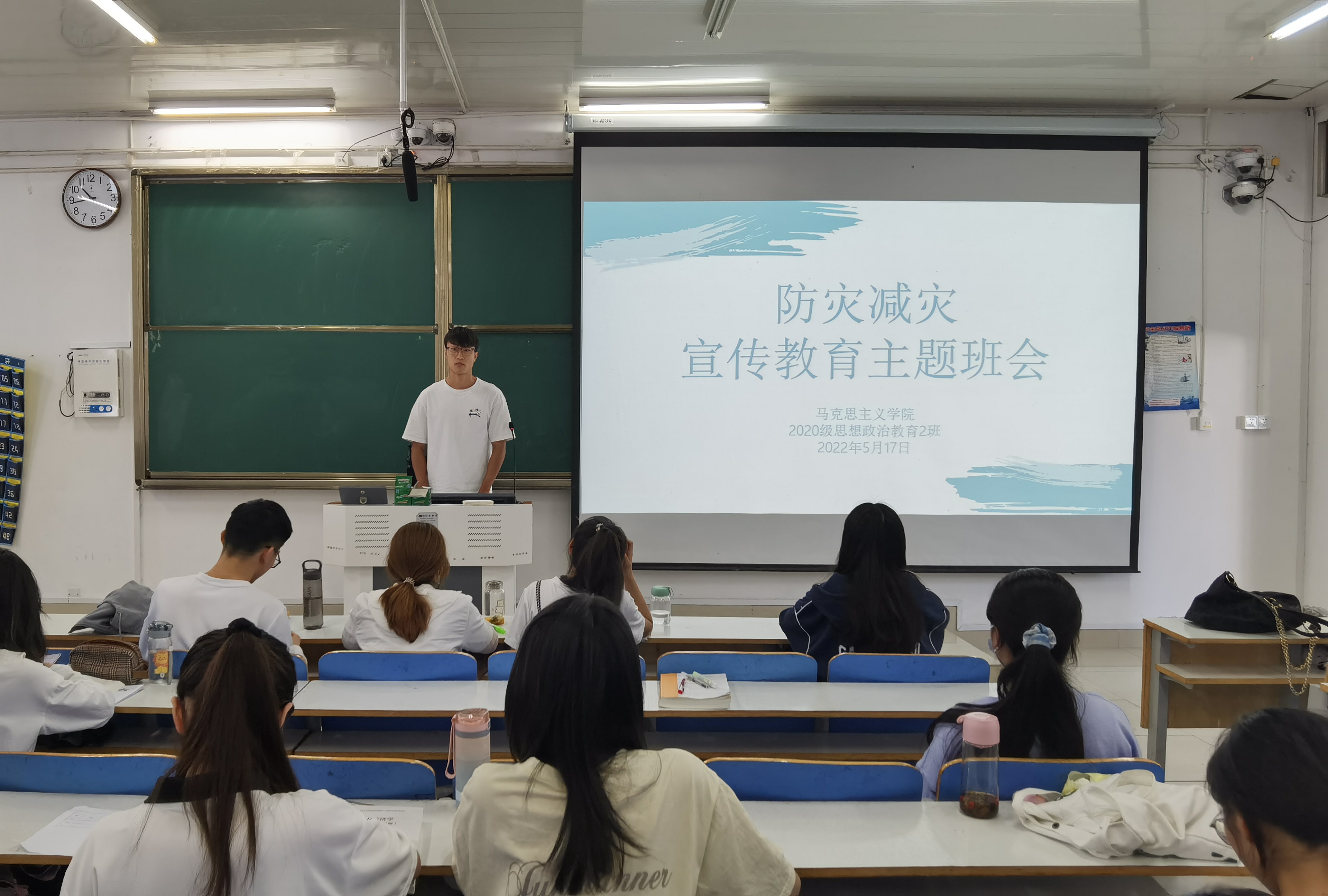 为加强学生安全教育,提高学生防灾减灾意识,5月17日上午,永利集团官网2020级思想政治教育二班、定向二班在社科楼514教室召开“防灾减灾”宣传教育主题班会。2020级思想政治教育二班、定向二班全体同学共同参与本次班会。班会由团支书陈宇航主持。