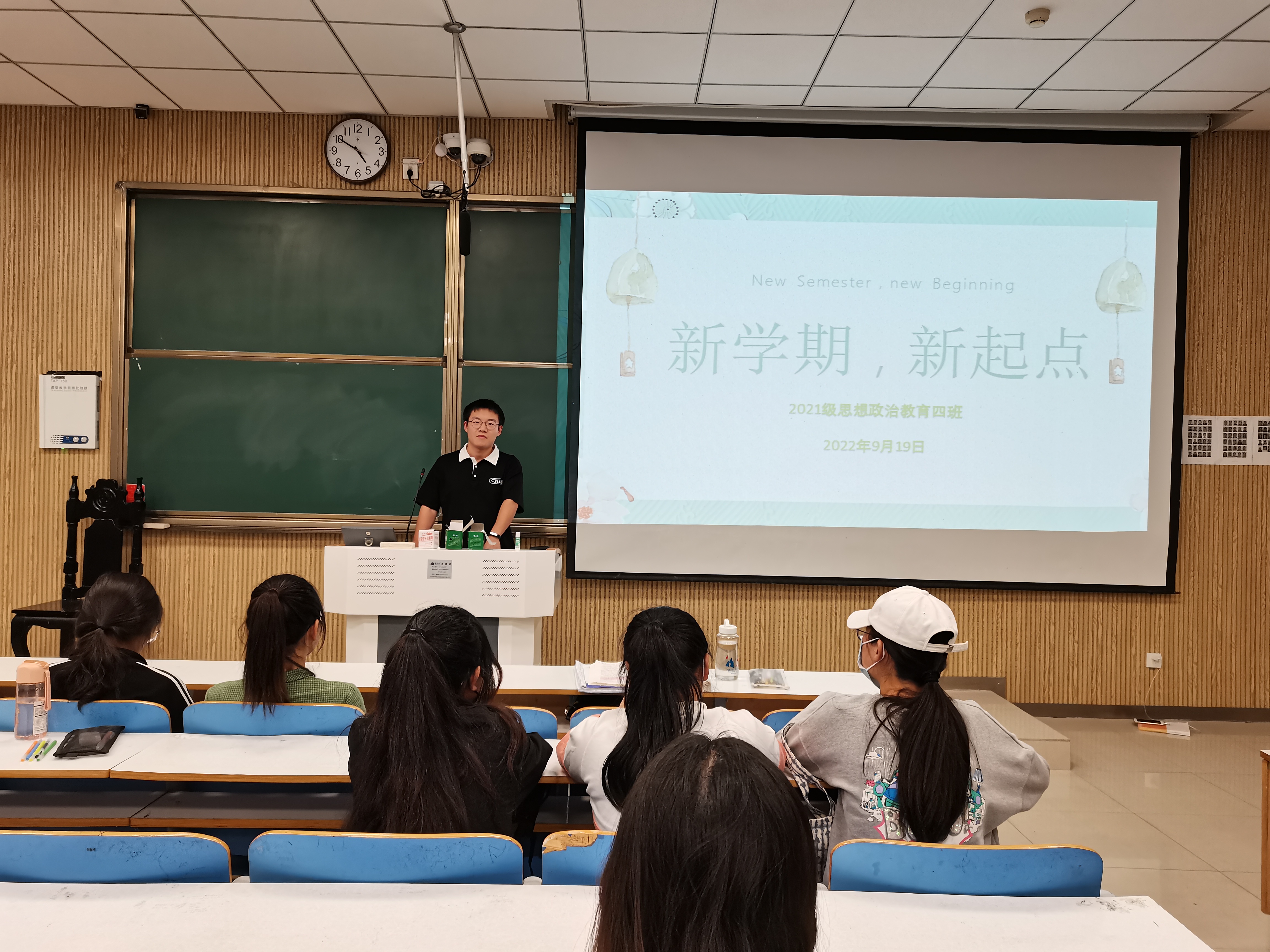 9月19日下午,永利集团官网2021级思想政治教育四班在社科楼515教室开展“新学期,新起点”师生交流会。辅导员高小佳及思想政治教育四班全体同学参与本次班会。班会由辅导员高小佳主持。