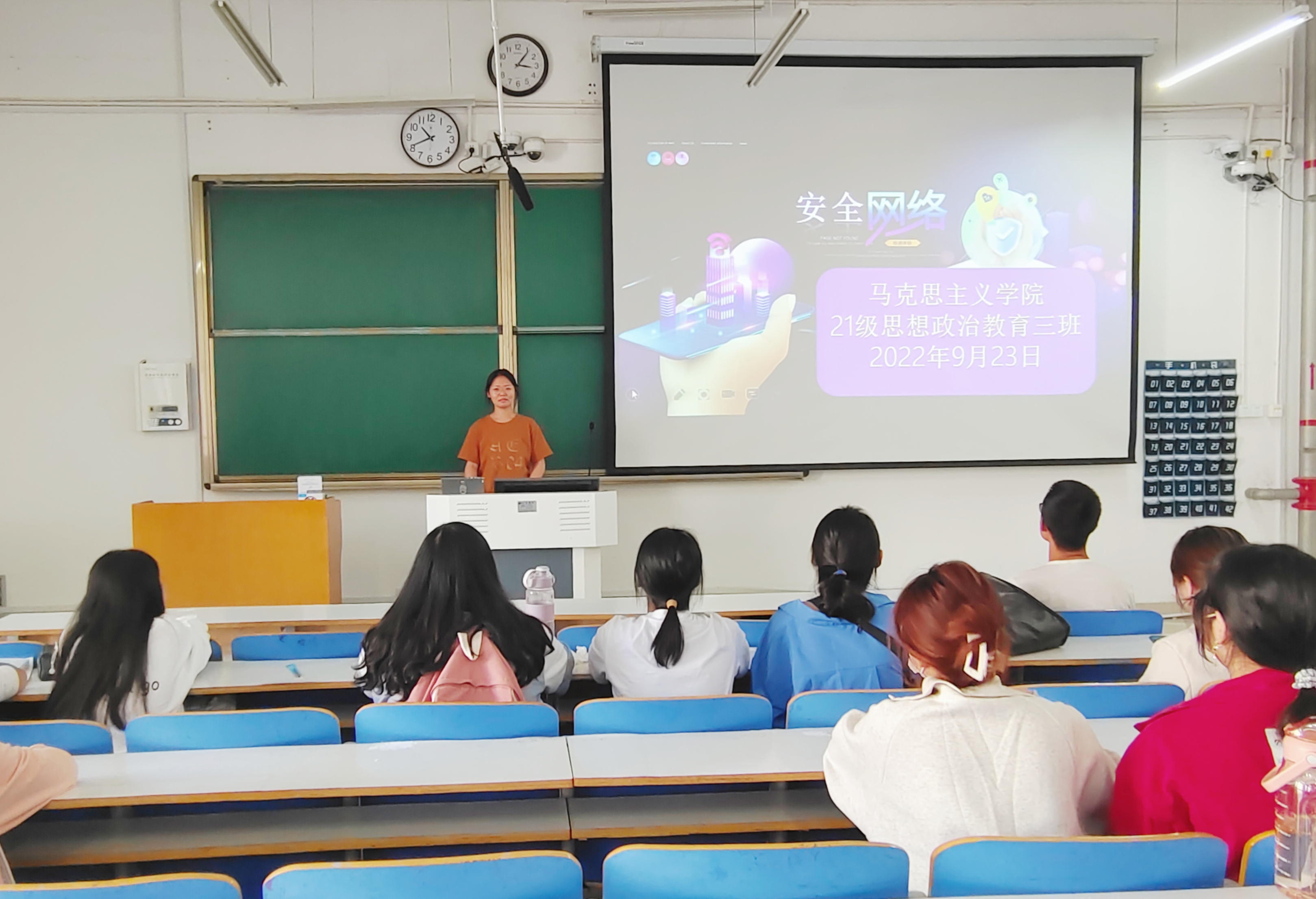 9月23日上午,永利集团官网2021级思想政治教育三班在社科楼514召开“提高安全意识 文明使用网络”主题班会。2021级思想政治教育三班全体成员参与此次会议。会议由心理委员许竞文主持。