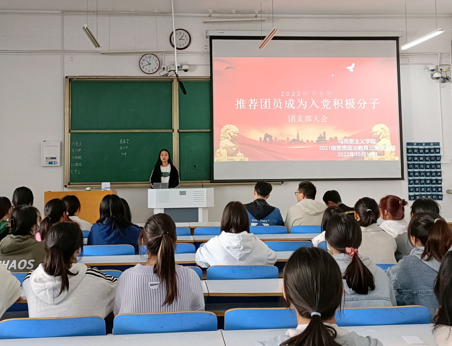 10月10日上午,永利集团官网2021级思想政治教育三班在社科楼514教室召开2022年下半年入党积极分子评选会。2021级思想政治教育三班全体同学参加了此次会议。会议由团支书王岚霄主持。