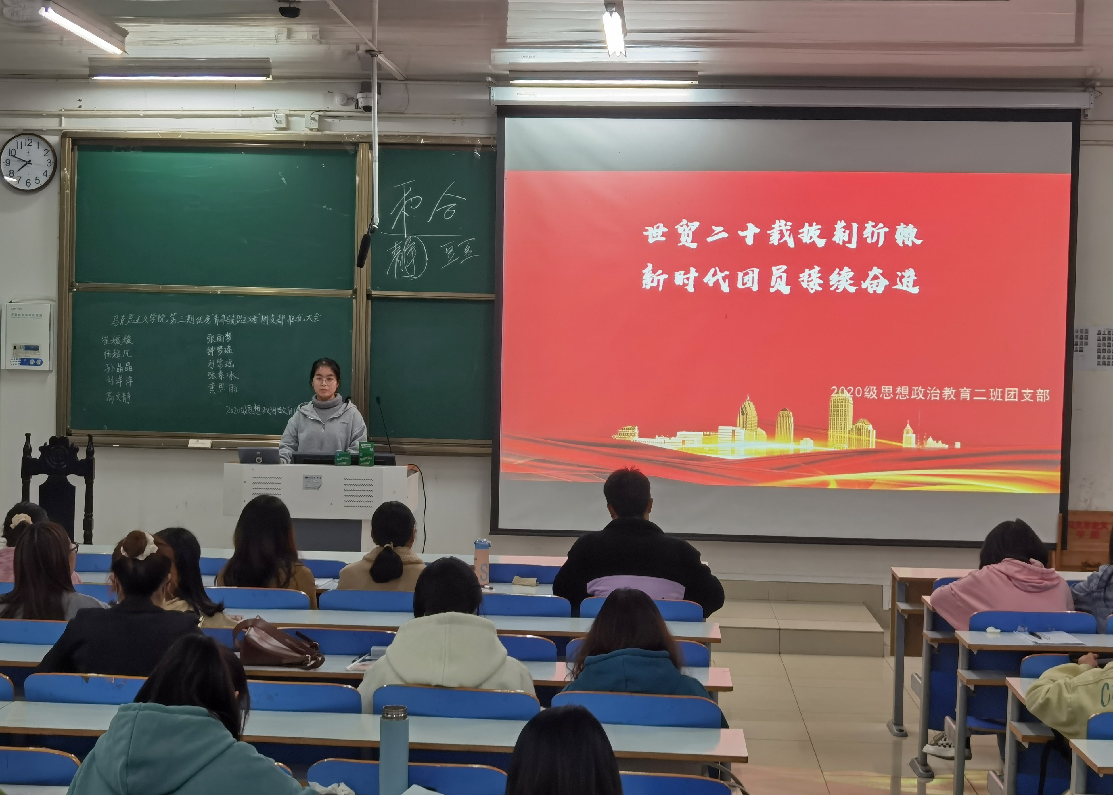 11月19日晚,永利集团官网2020级思想政治教育二班、定向二班在社科楼516教室召开“世贸二十载披荆斩棘,新时代团员接续奋进”主题团课。2020级思想政治教育二班、定向二班全体团员共同参与本次团课。团课由黄思雨讲授。