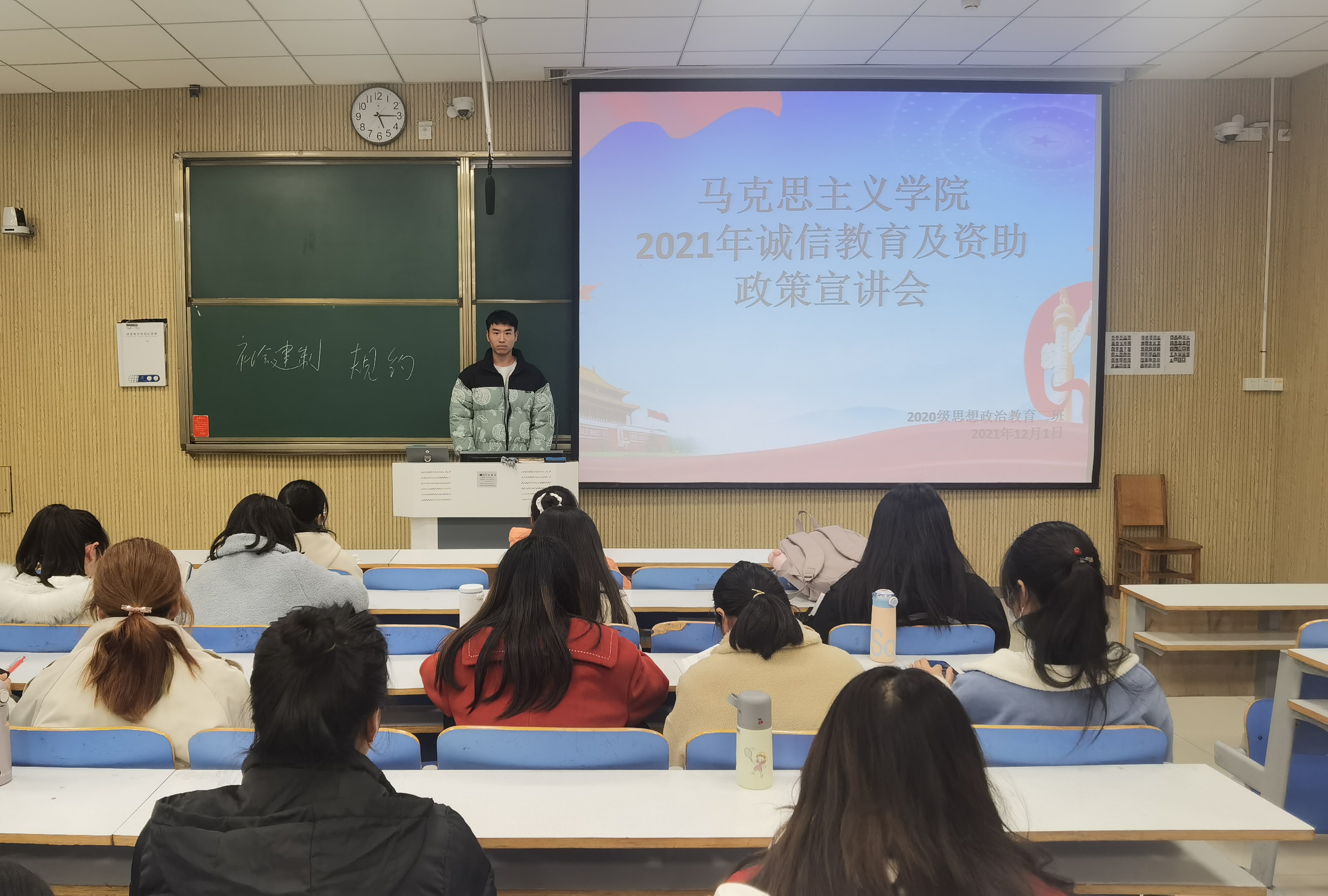 为进一步推进永利集团官网资助政策和资助育人宣传工作,切实增强资助工作实效。12月1日下午,永利集团官网2020级思想政治教育二班、定向二班在社科楼515教室召开诚信教育及资助政策宣传主题班会。2020级思想政治教育二班、定向二班全体同学共同参与本次班会。班会由副班长高红凯主持。