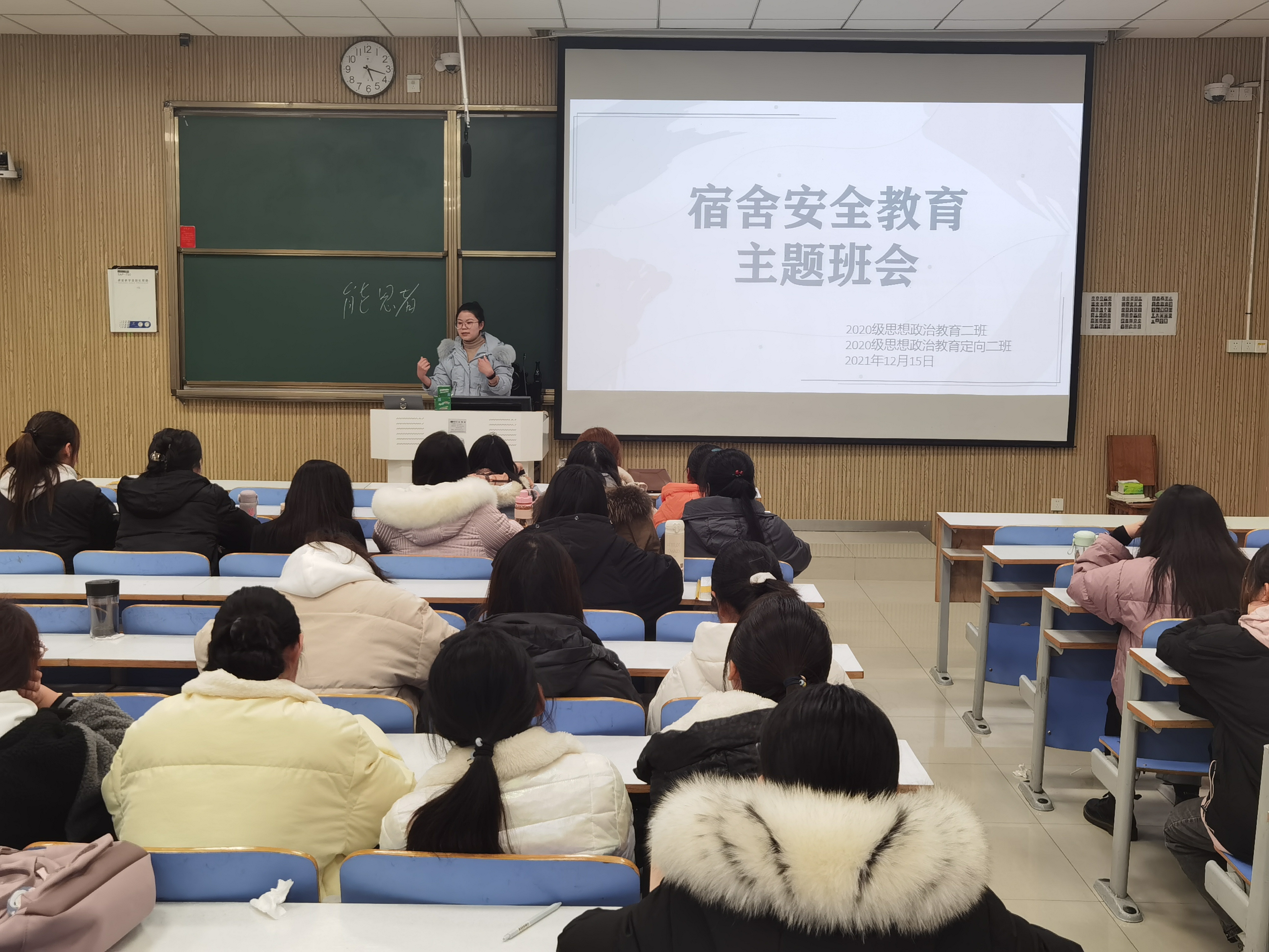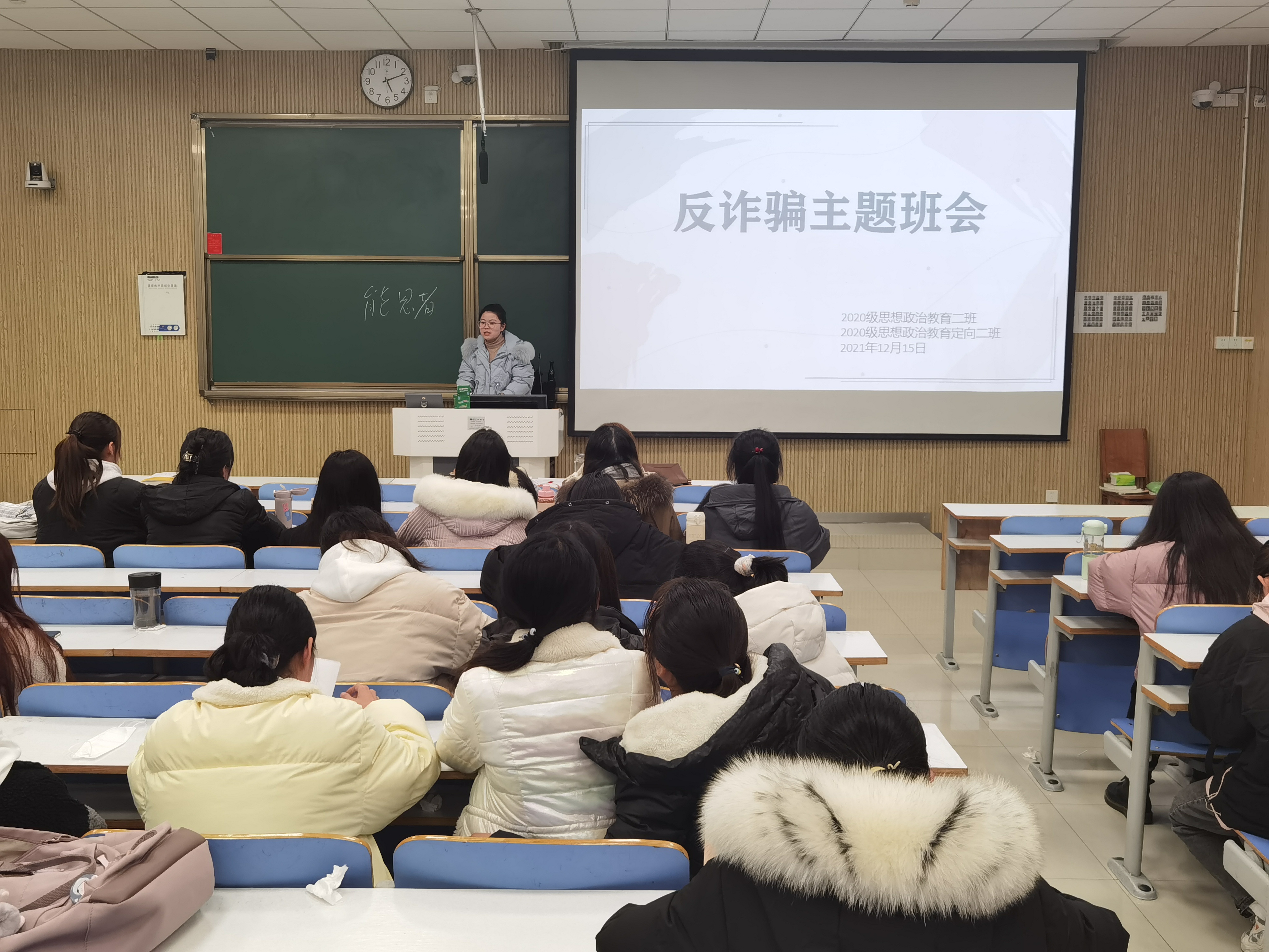 为提高学生的安全防范意识,切实保护学生的人身财产安全,12月15日下午,永利集团官网2020级思想政治教育二班、定向二班在社科楼515教室召开“反诈骗”和“宿舍安全”教育主题班会。辅导员高小佳及2020级思想政治教育二班、定向二班全体同学共同参与本次班会。班会由辅导员高小佳主持。