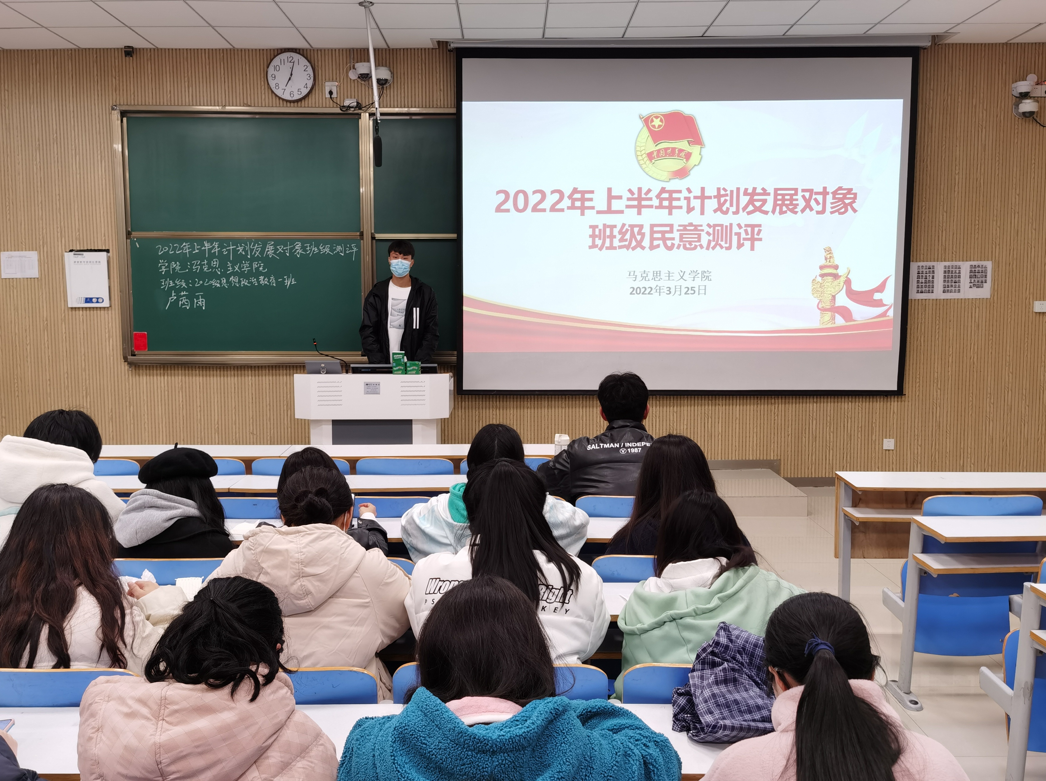为进一步发展壮大党员队伍,为党支部注入新的活力,3月25日晚,永利集团官网2020级思想政治教育二班在社科楼515教室召开2022年上半年党员计划发展对象班级民意测评会。2020级思想政治教育二班全体团员共同参加本次会议。会议由团支书陈宇航主持。
