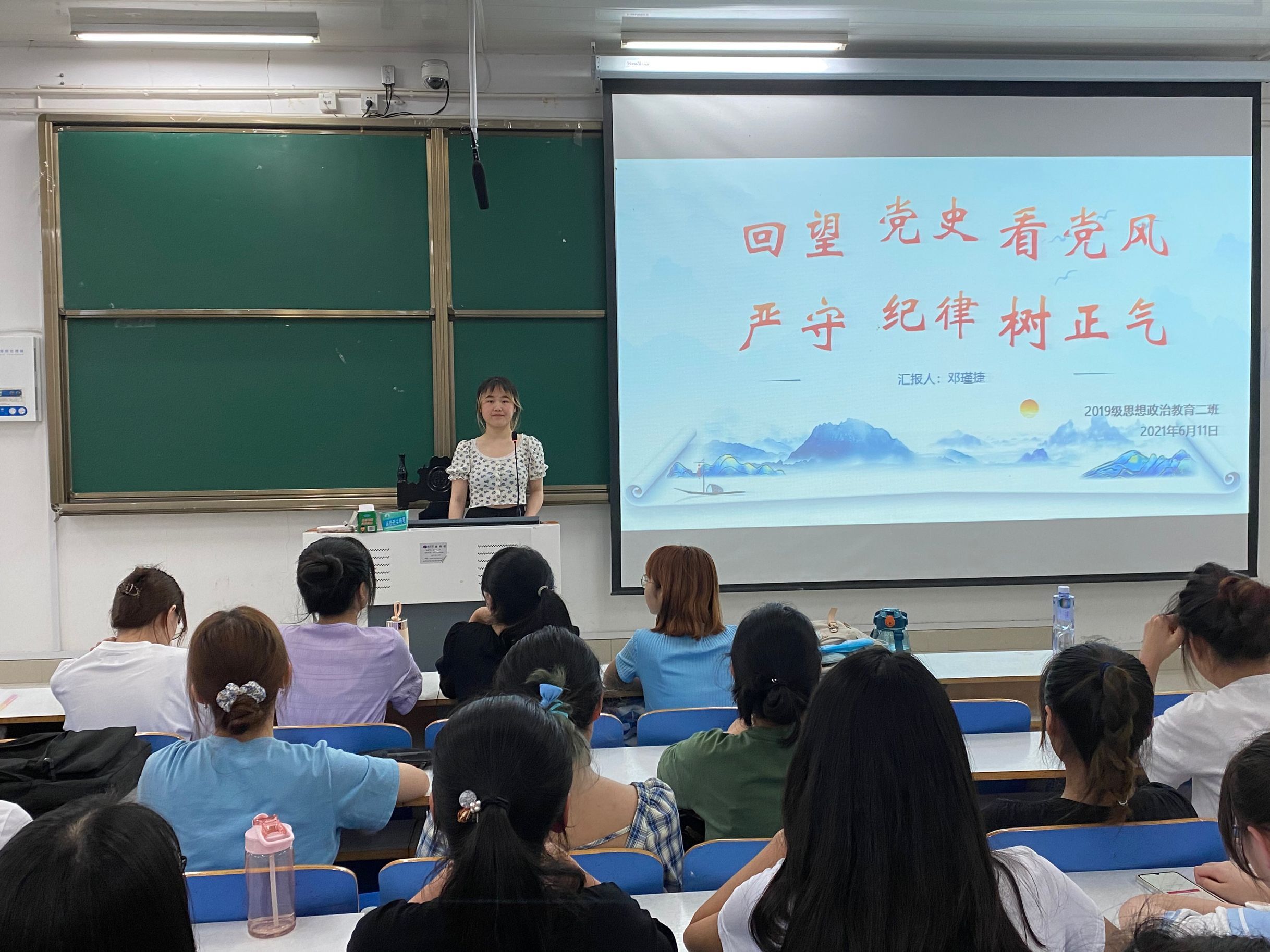 每一次历史回眸,都是一次精神洗礼;每一次党性教育,都是一次自我革命。6月11日上午,永利集团官网2019级思想政治教育二班于社科楼516教室召开“回望党史看党风 严守纪律树正气”党史教育主题团课。2019级思想政治教育二班全体成员共同参会。会议由文体委员邓瑾捷主持。