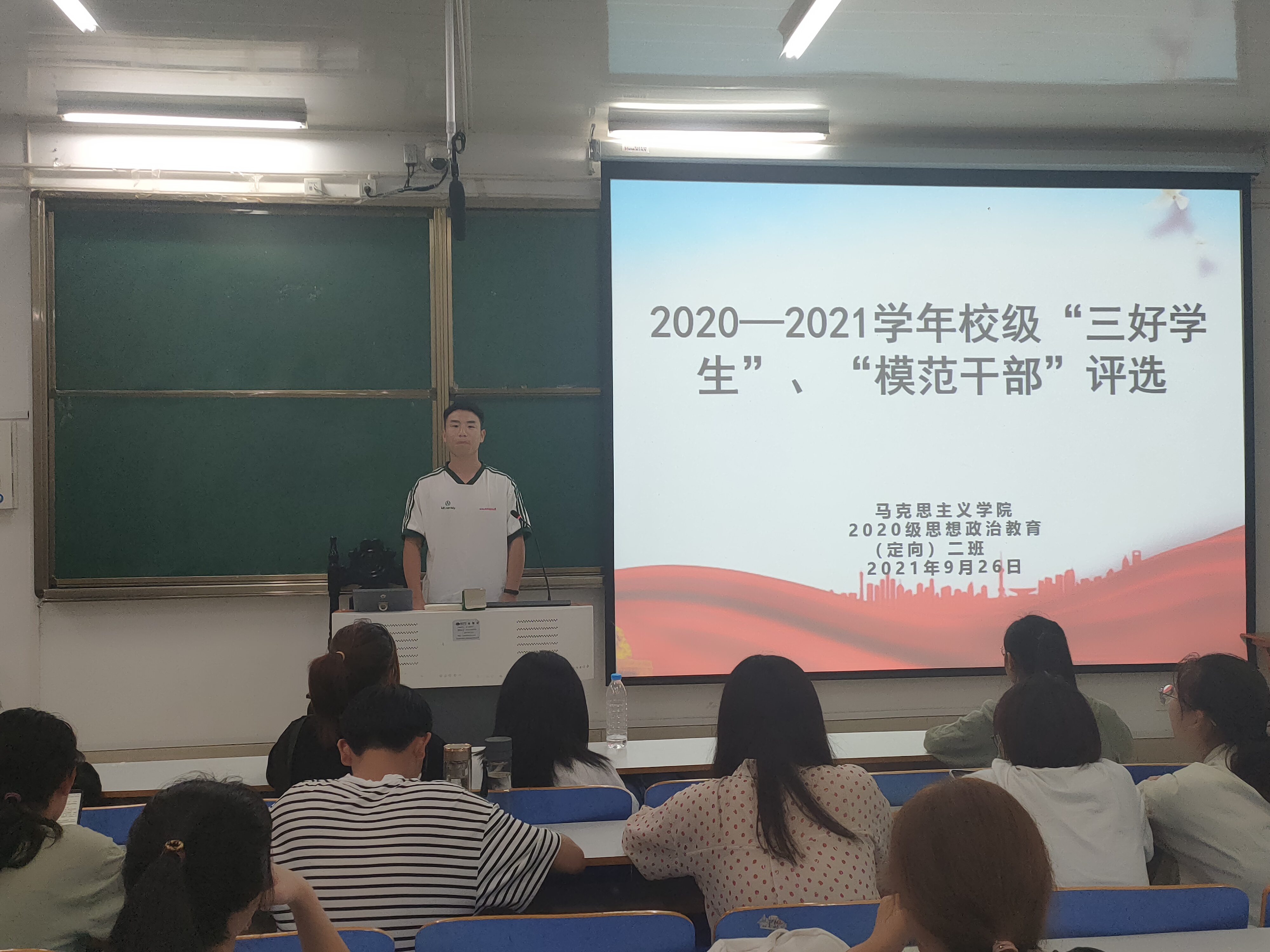 9月26日晚上,永利集团官网2020级思想政治教育定向二班“三好学生”“模范干部”评选会在社科楼514教室顺利召开。定向二班全体同学参与本次会议。