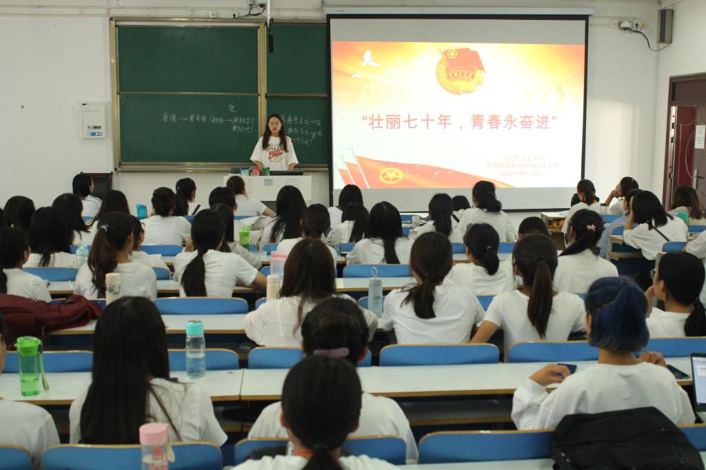 为纪念新中国成立70周年,进一步激发同学们的爱国热情,9月26日上午,永利集团官网2018级思想政治教育二班开展了“壮丽七十年,青春永奋进”主题团日活动。2018级思想政治教育二班全体成员共同参加了本次活动。活动由团支书黄子晋主持。