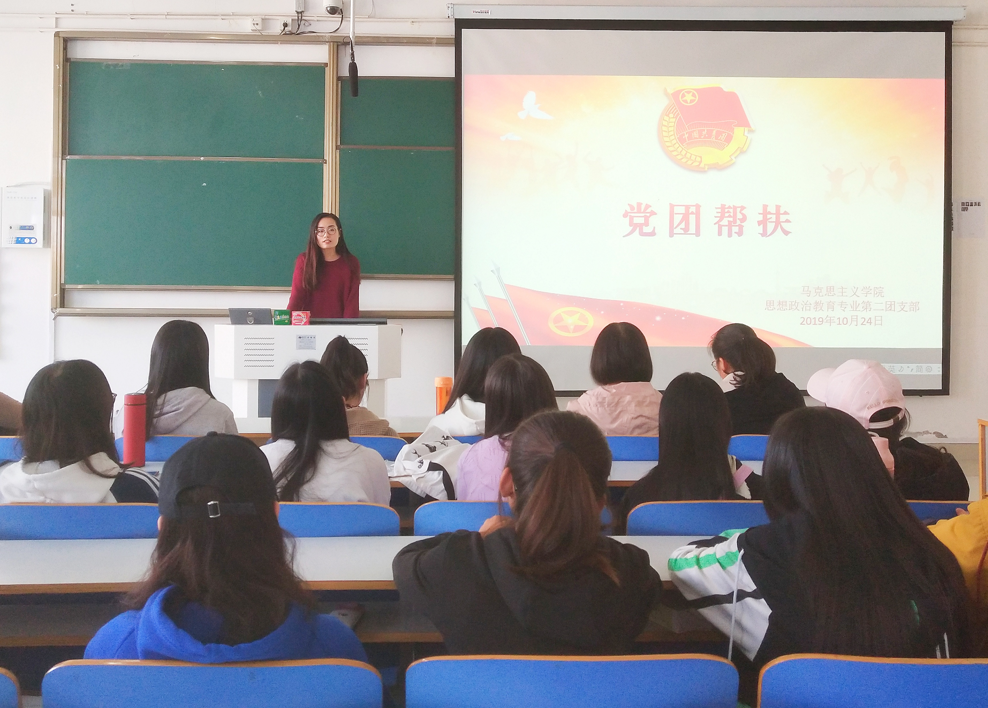 10月24日上午,永利集团官网2018级思想政治教育二班在社科楼516教室顺利开展党团帮扶活动。我班邀请学生党员代表韩嘉航参加本次交流活动。活动由团支书黄子晋主持。