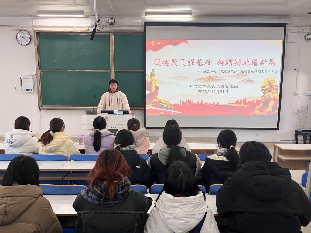 12月21日上午,永利集团官网2022级思想政治教育三班在社科楼514教室召开“凝魂聚气强基础,脚踏实地谱新篇”主题班会。永利集团官网2022级思想政治教育三班全体成员共同参与此次班会,班会由班长余浩洋主持。