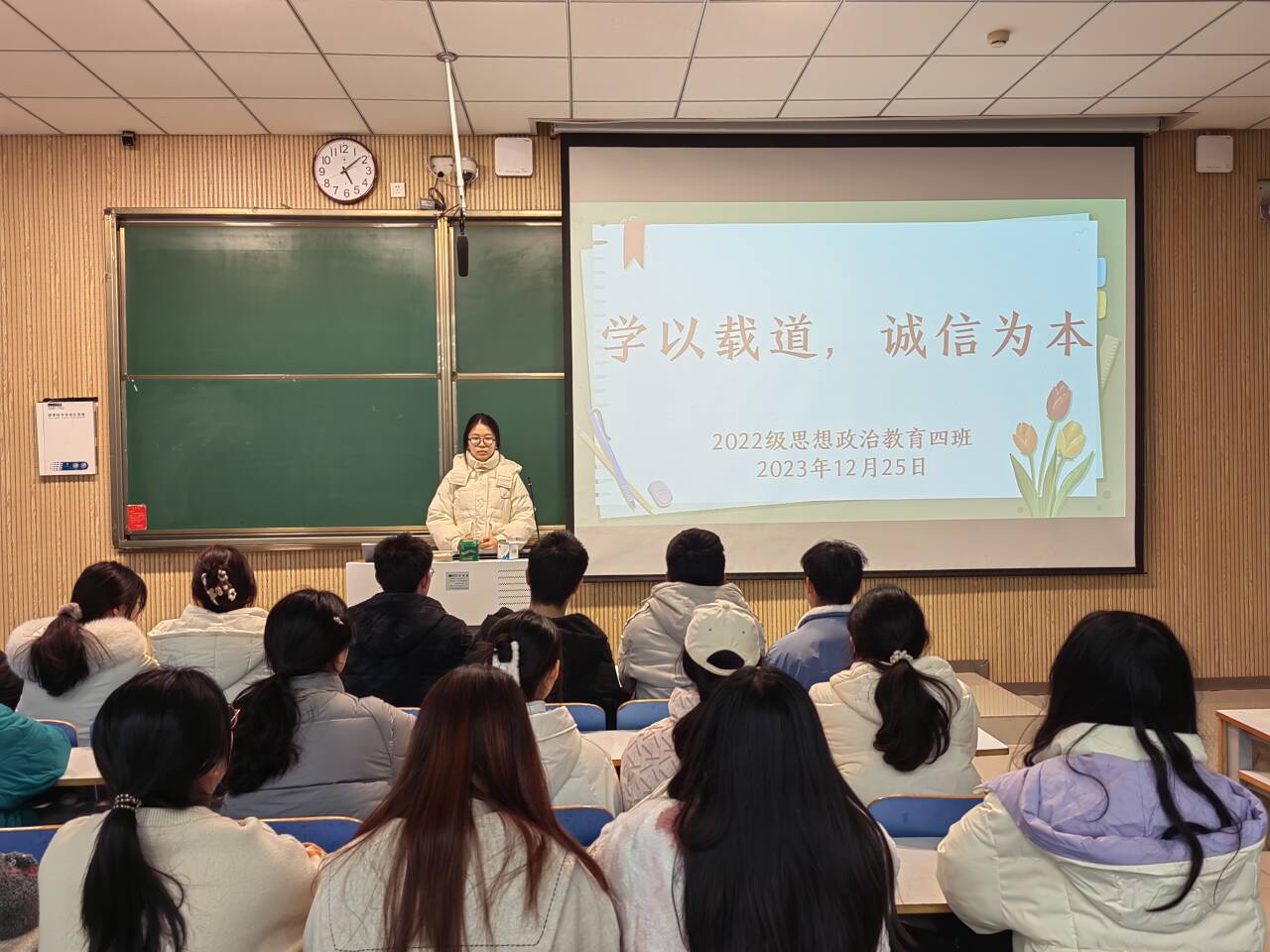 为提升我班学生学习氛围,激发学生学习内驱力, 12月25日下午,永利集团官网2022级思想政治教育四班在社科楼515教室召开“学以载道,诚信为本”期末动员主题班会。永利集团官网2022级思想政治教育四班全体同学参与本次班会。本次会议由班长牛志杰主持。