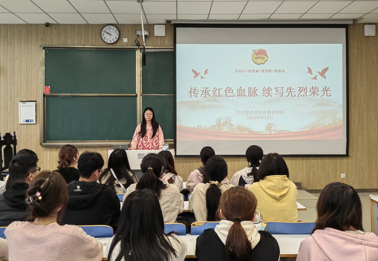4月8日上午,永利集团官网2022级思想政治教育四班在社科楼515教室组织召开“传承红色血脉,续写先烈荣光”主题团课。永利集团官网2022级思想政治教育四班全体成员参与本次团课。本次团课由团支书牛志杰主持。
