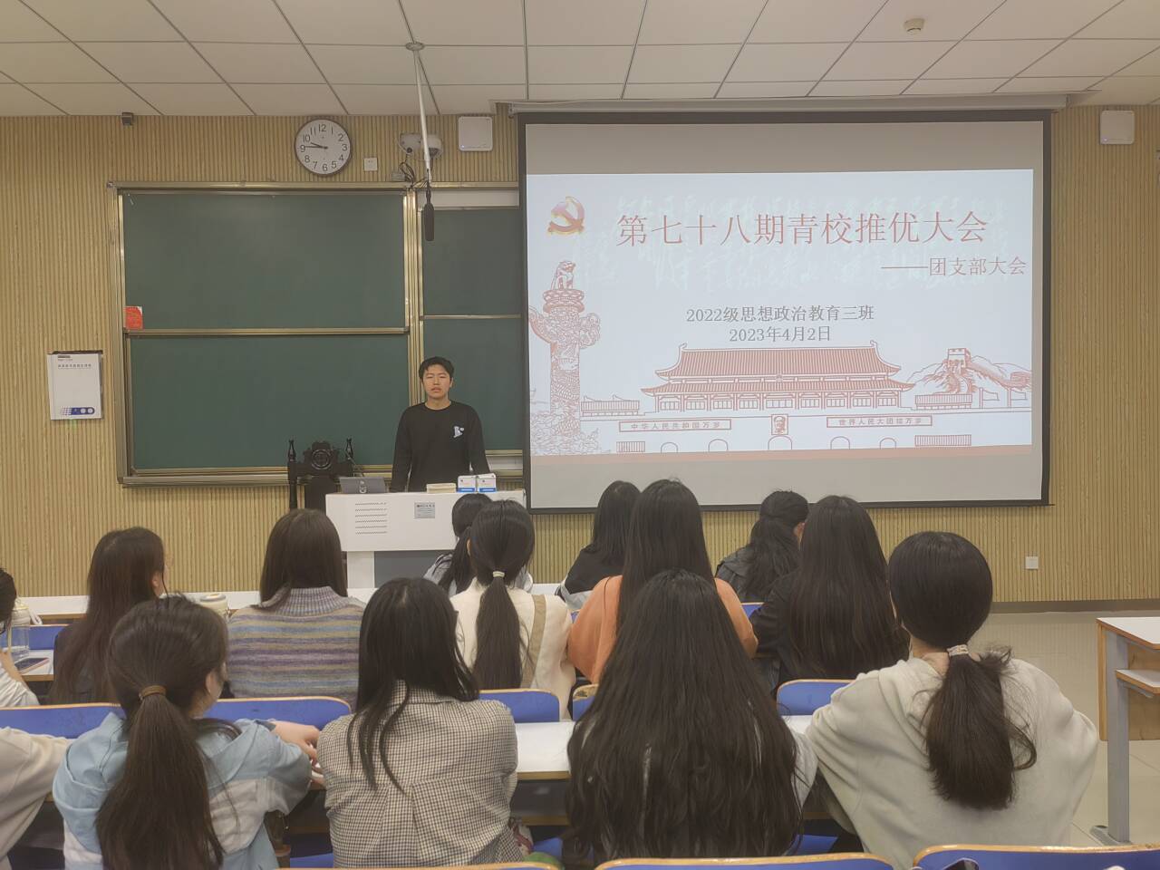 4月2日上午,永利集团官网2022级思想政治教育三班在社科楼515教室召开“青年共产主义学校”推优大会。永利集团官网2022级思想政治教育三班全体同学共同参与此次大会。大会由团支书余浩洋主持。