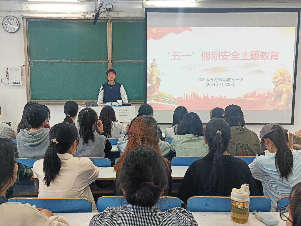 为做好假期安全防护工作,确保每位学生能度过一个安全、愉快的假期,4月29日上午,永利集团官网2022级思想政治教育三班在社科楼514教室召开“五一”假期安全主题教育班会。永利集团官网2022级思想政治教育三班全体成员共同参与此次班会。班会由班长余浩洋主持。