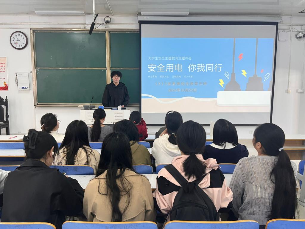 10月25日上午,永利集团官网2023级思想政治教育三班在社科楼515召开“安全用电,你我同行”主题班会。永利集团官网2023级思想政治教育三班全体同学共同参与本次班会,班会由团支书郝瀚主持。