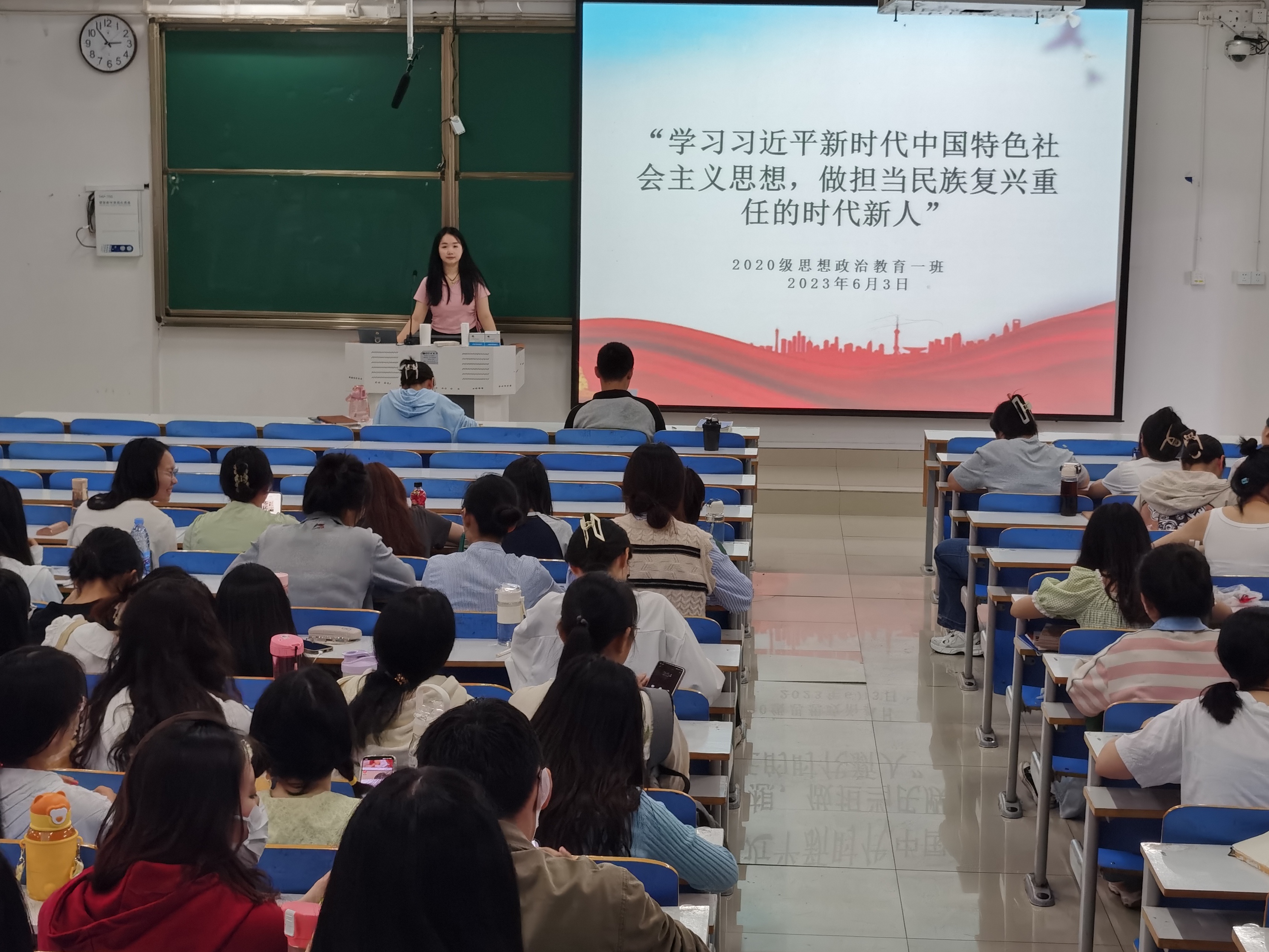 为深入学习习近平新时代中国特色社会主义思想,6月3日下午,永利集团官网2020级思想政治教育一班团支部在社科楼514教室开展“学习习近平新时代中国特色社会主义思想,做担当民族复兴重任的时代新人”主题团课,2020级思想政治教育一班全体团员参加了本次团课,团课由团支部书记卢茜雨主持。