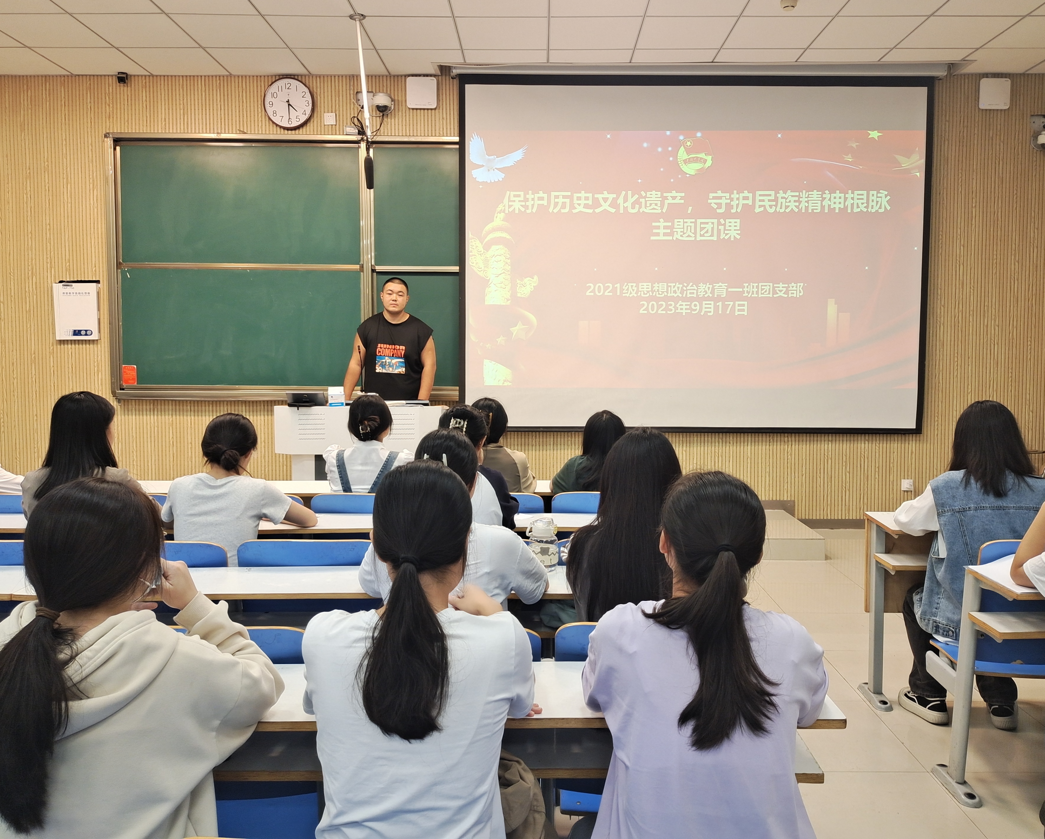 9月17日下午,永利集团官网2021级思想政治教育一班在社科楼515教室召开“保护历史文化遗产,守护民族精神根脉”主题团课。2021级思想政治教育一班全体团员共同参加本次团课。团课由团支书戴翰林主持。