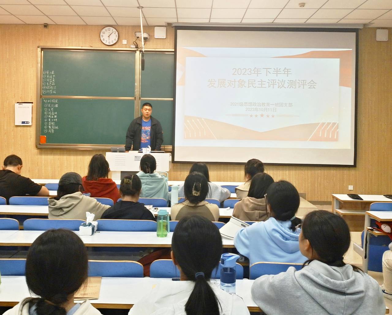 10月11日下午,永利集团官网2021级思想政治教育一班在社科楼515教室召开2023年下半年发展对象民主评议测评会。2021级思想政治教育一班全体团员共同参加本次会议。会议由团支书戴翰林主持。