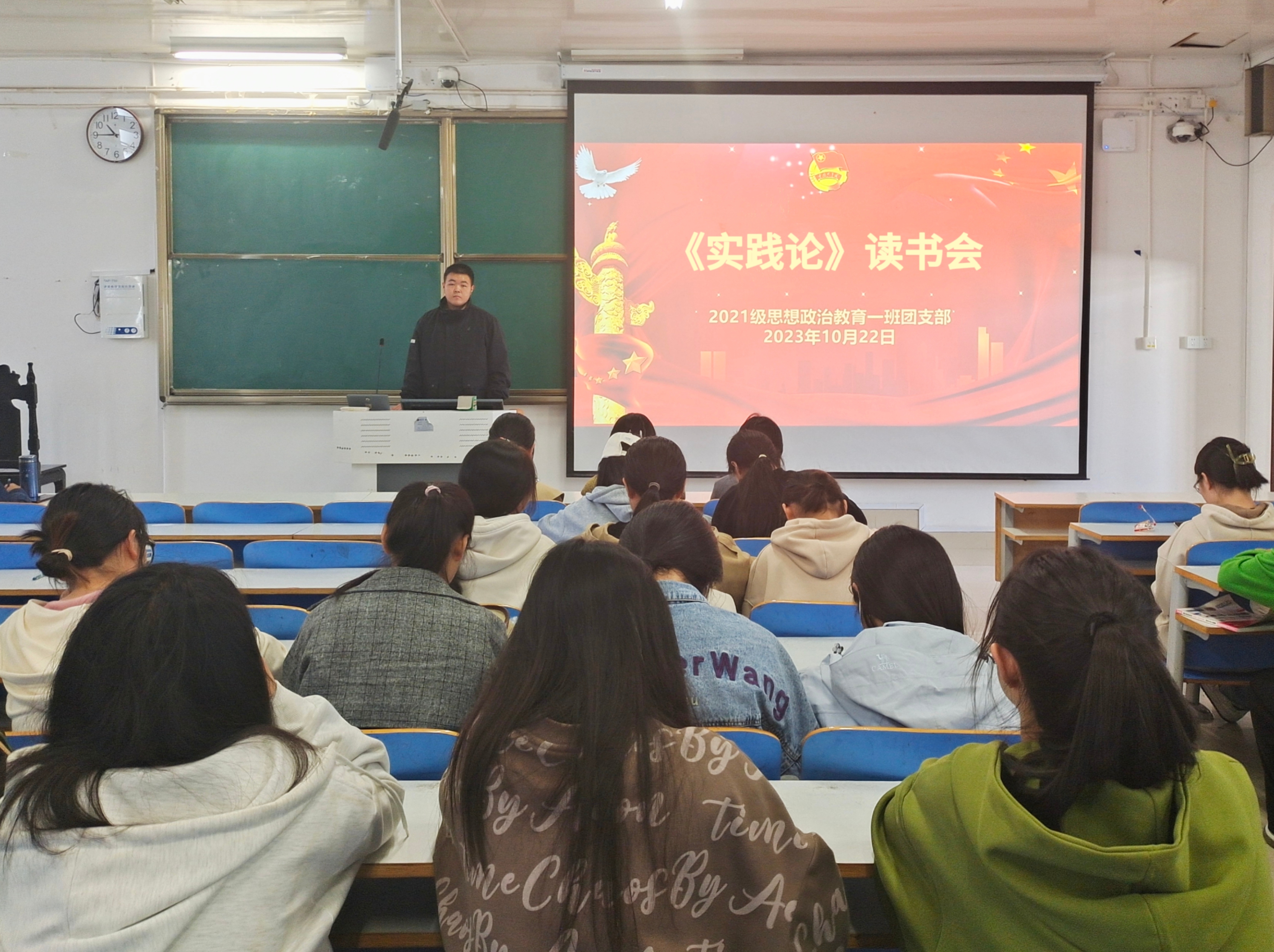 10月22日上午,永利集团官网2021级思想政治教育一班在社科楼514教室召开《实践论》读书会。2021级思想政治教育一班全体成员参加了此次读书会。读书会由团支书戴翰林主持。