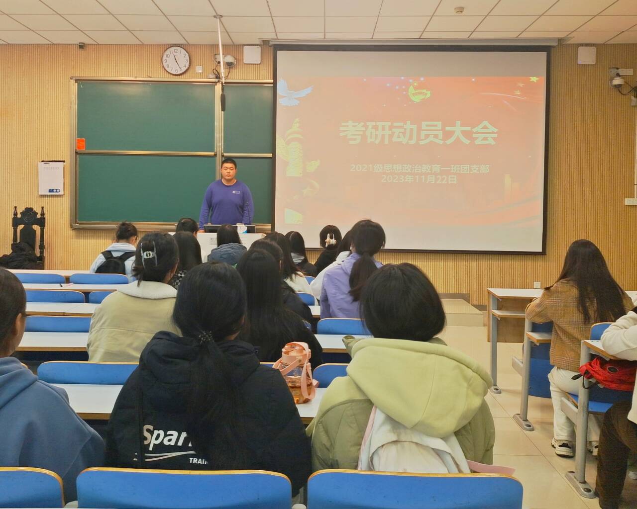 为了引导学生树立正确的考研目标,增强考研自信,提前做好考研准备,11月22日上午,永利集团官网2021级思想政治教育一班在社科楼514教室召开“考研动员大会”。2021级思想政治教育一班全体成员参加了此次会议。会议由团支书戴翰林主持。
