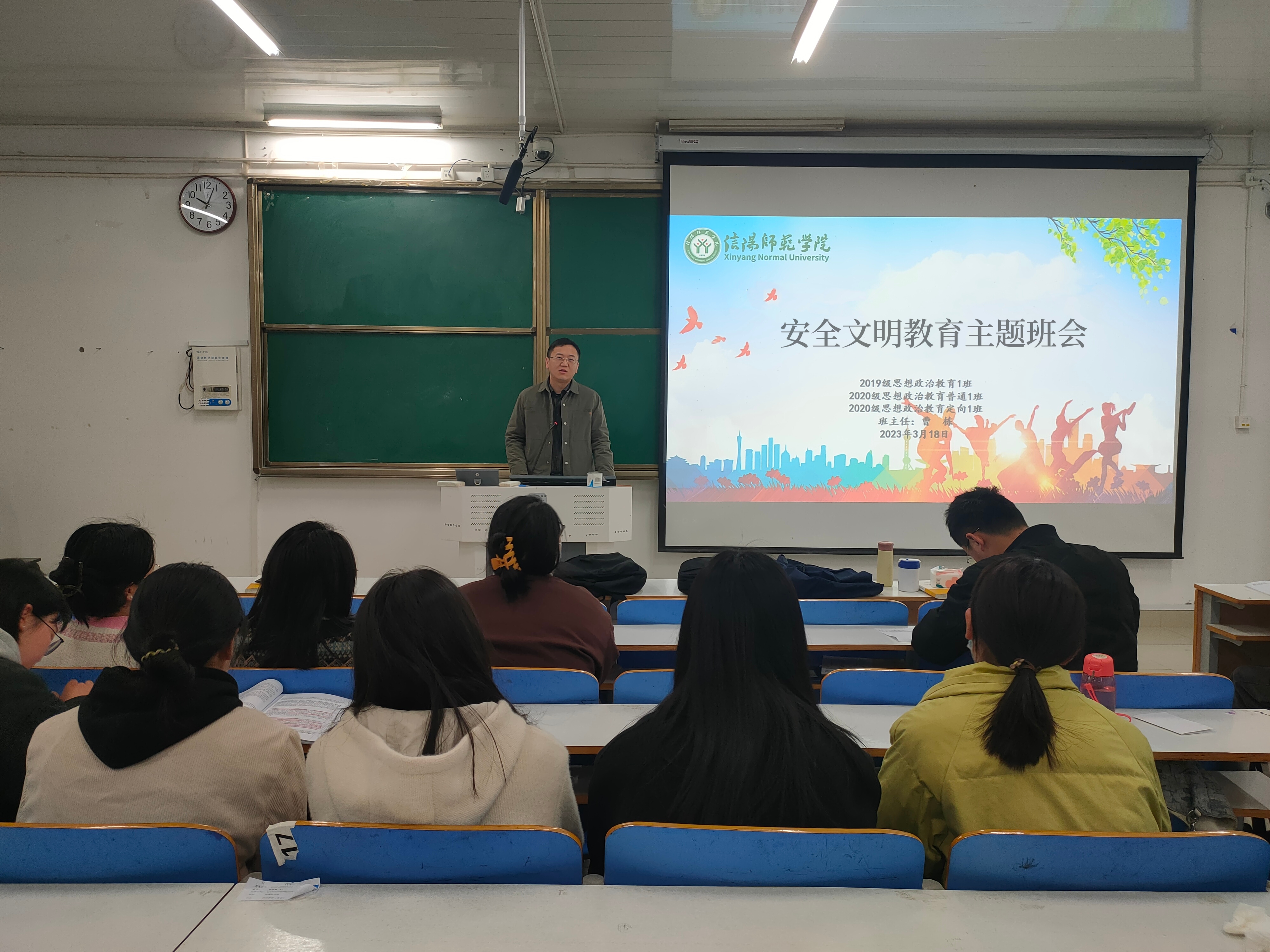 3月18日上午,永利集团官网2020级思想政治教育普通一班、定向一班在社科楼514教室顺利举行了安全教育主题班会。此次班会由辅导员曹栋主持。