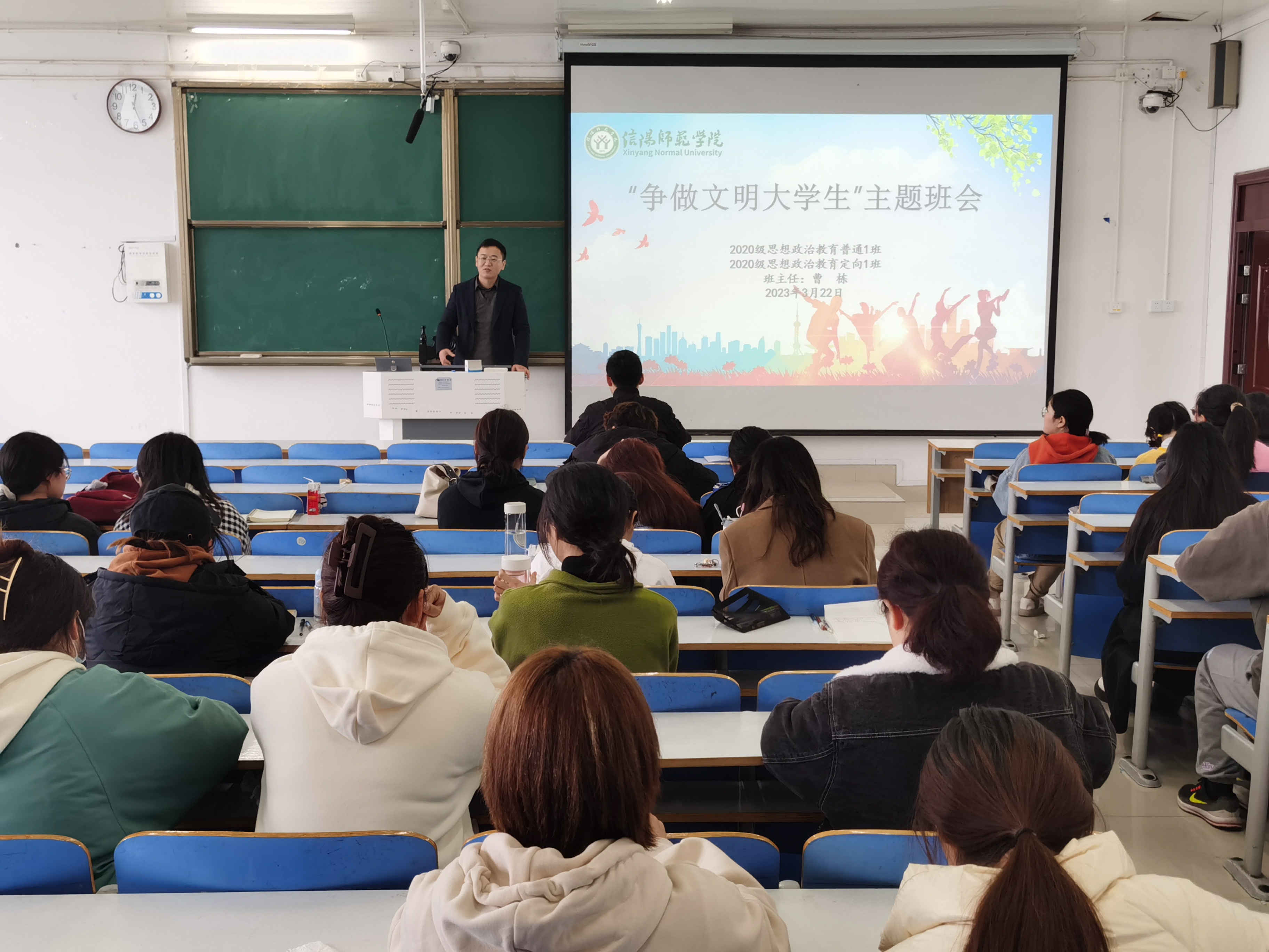 3月22日中午,永利集团官网2020级思想政治教育一班、定向一班在社科楼514教室召开“争做文明大学生”主题班会。永利集团官网2020级思想政治教育一班、定向一班全体同学参加本次班会,班会由辅导员曹栋主持。