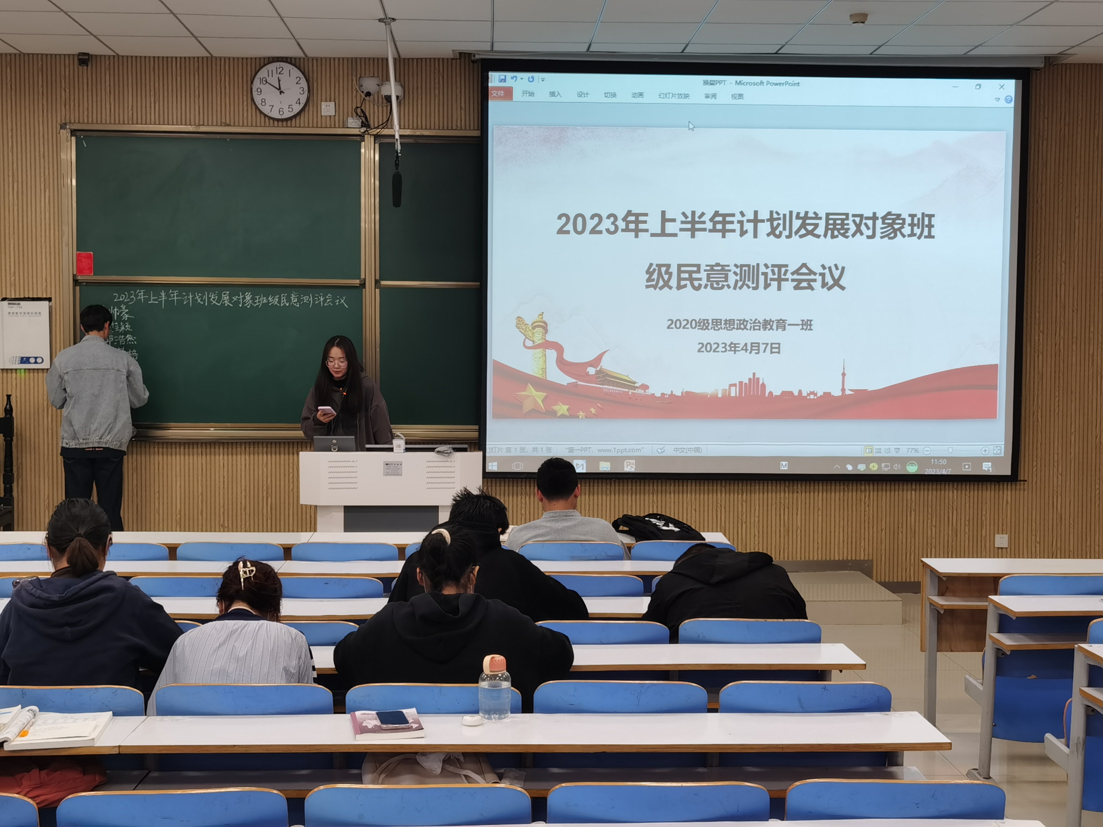 4月7日上午,永利集团官网2020级思想政治教育一班在社科楼515教室召开2023年上半年计划发展对象班级民意测评会议。2020级思想政治教育一班全体同学参加了本次会议,会议由团支部书记卢茜雨主持。