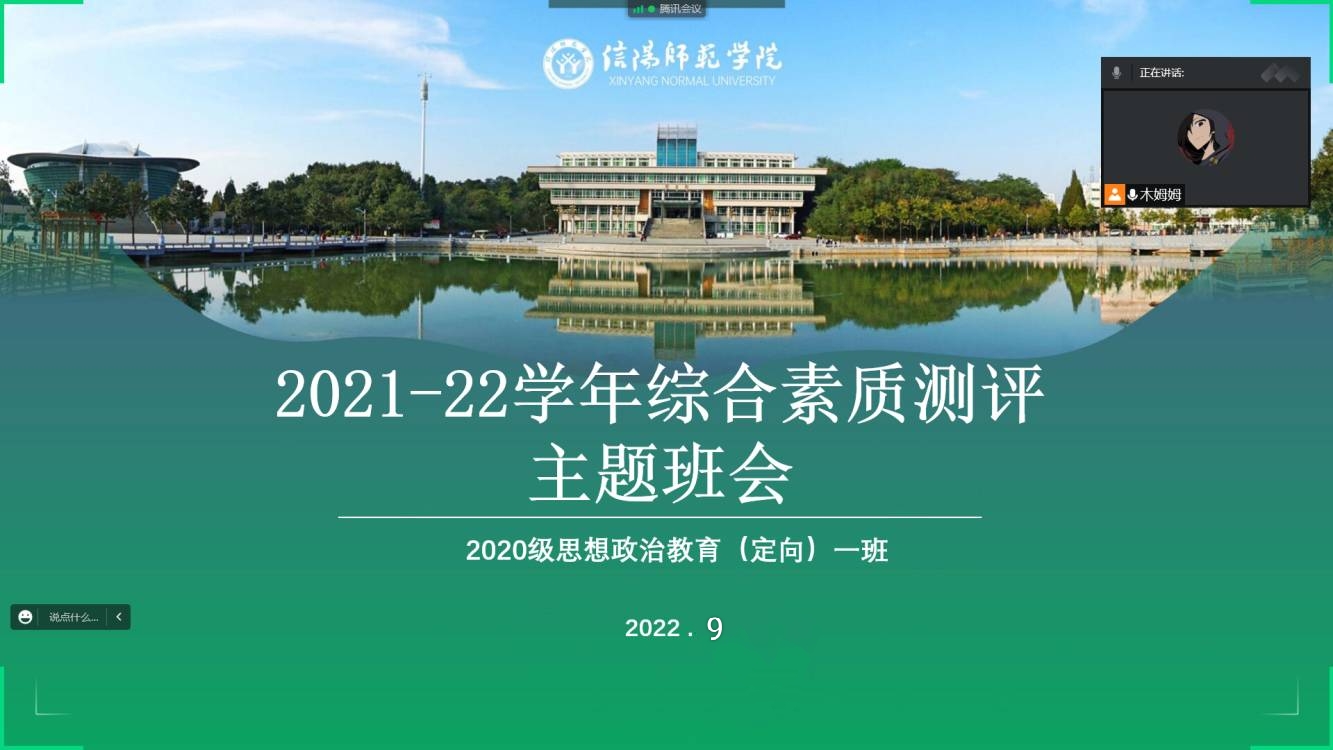 9月28日,永利集团官网2020级思想政治教育定向一班采用腾讯会议的形式顺利举办学年综合素质测评班会。定向一班全体学生参与了此次班会。