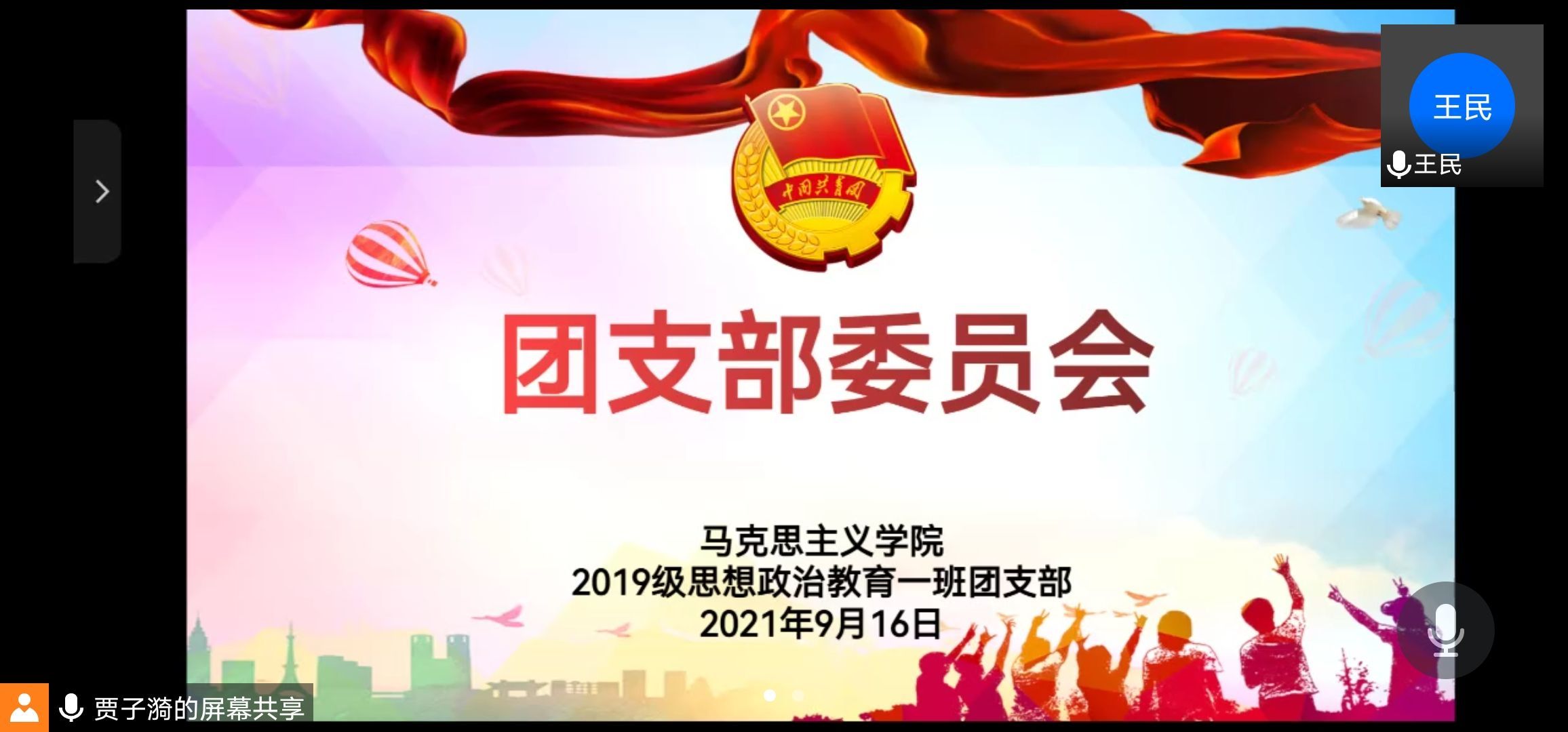 9月16日上午,永利集团官网2019级思想政治教育一班在腾讯视频召开团支部委员会。2019级思想政治教育一班团支委全体成员参加本次会议。会议由副班长王民主持。