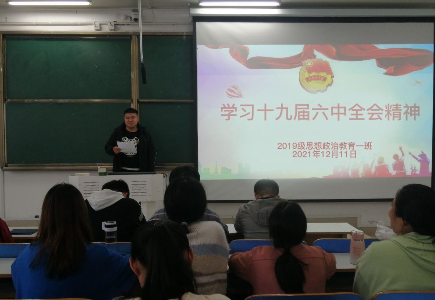 12月11日上午,永利集团官网2019级思想政治教育一班第一团支部在社科楼516教室召开“学习党的十九届六中全会精神”主题团课。永利集团官网2019级思想政治教育一班团支部全体团员参加本次团课。团课由团支书贾子漪主持。