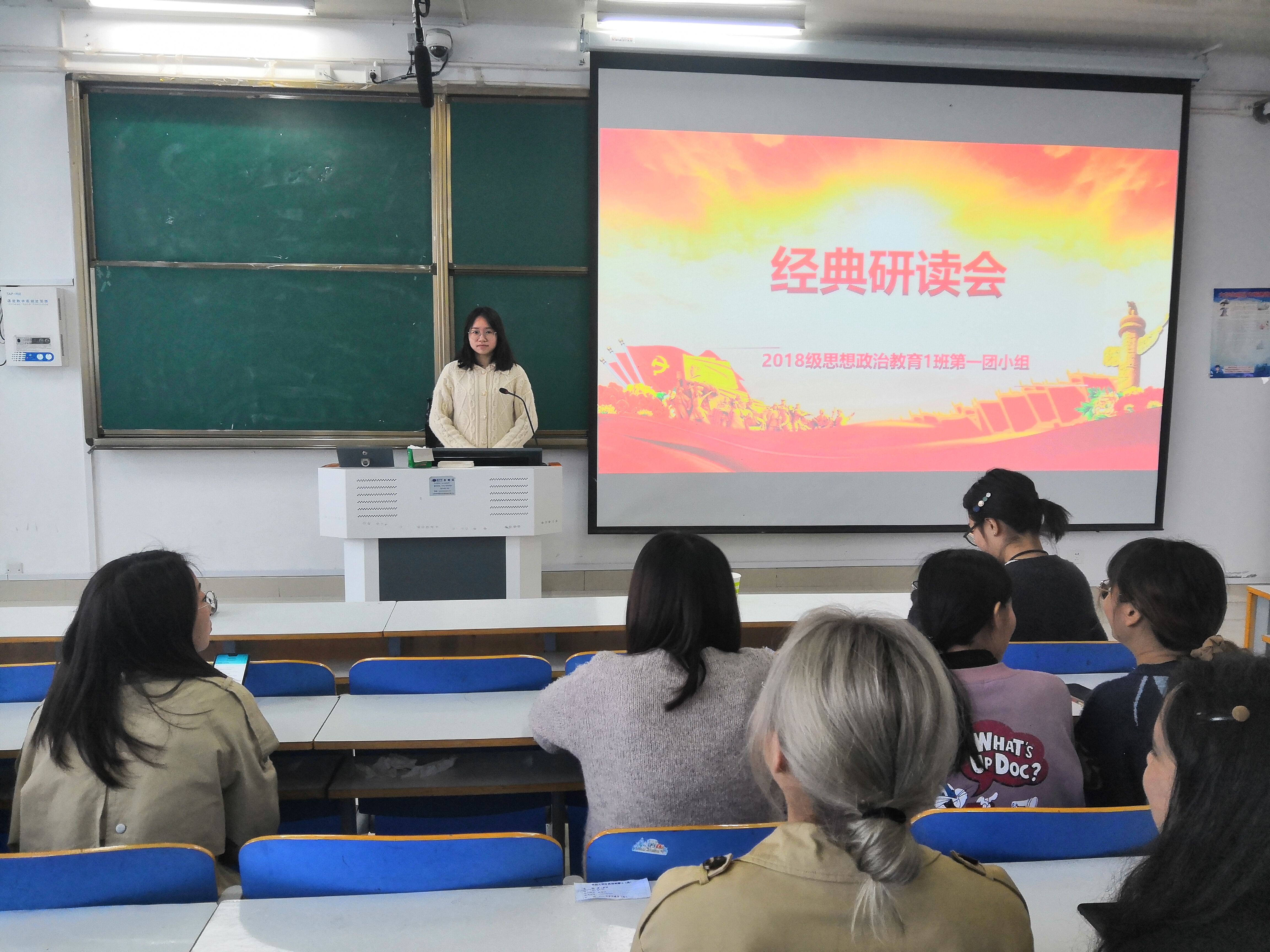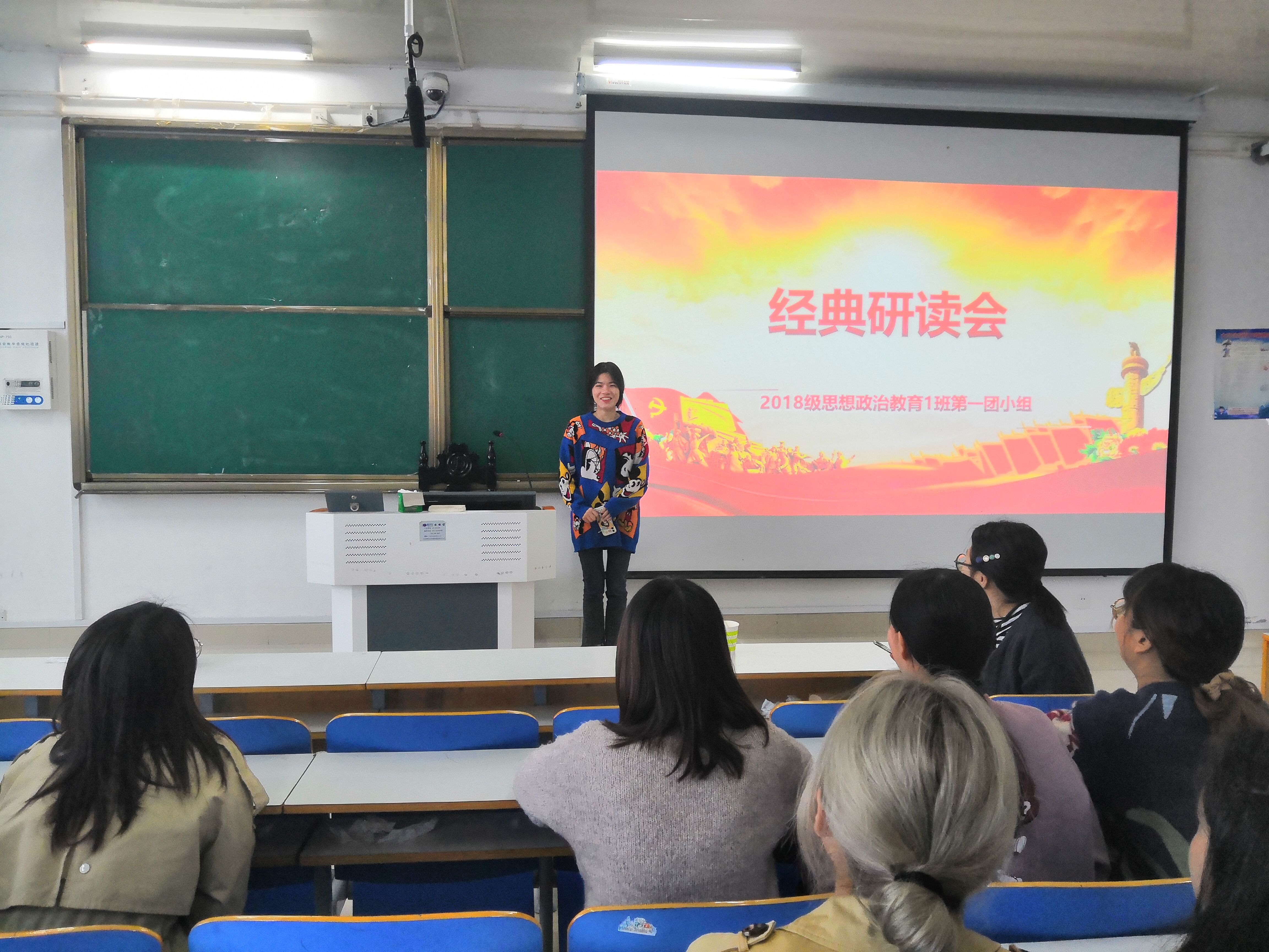4月26日上午,永利集团官网2018级思想政治教育一班第一团小组在社科楼514教室顺利开展“经典研读”主题团会。第一团小组全体成员共同参加此次团会。该团会由团小组成员刘婕主持。