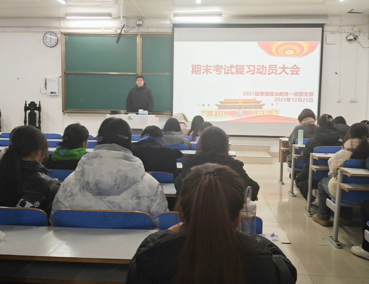 为加强学风建设,推进学生期末考试复习工作的开展,12月25日下午,永利集团官网2021级思想政治教育一班在社科楼514教室召开“期末考试复习动员大会”。2021级思想政治教育一班全体成员参加本次会议。会议由团支书戴翰林主持。