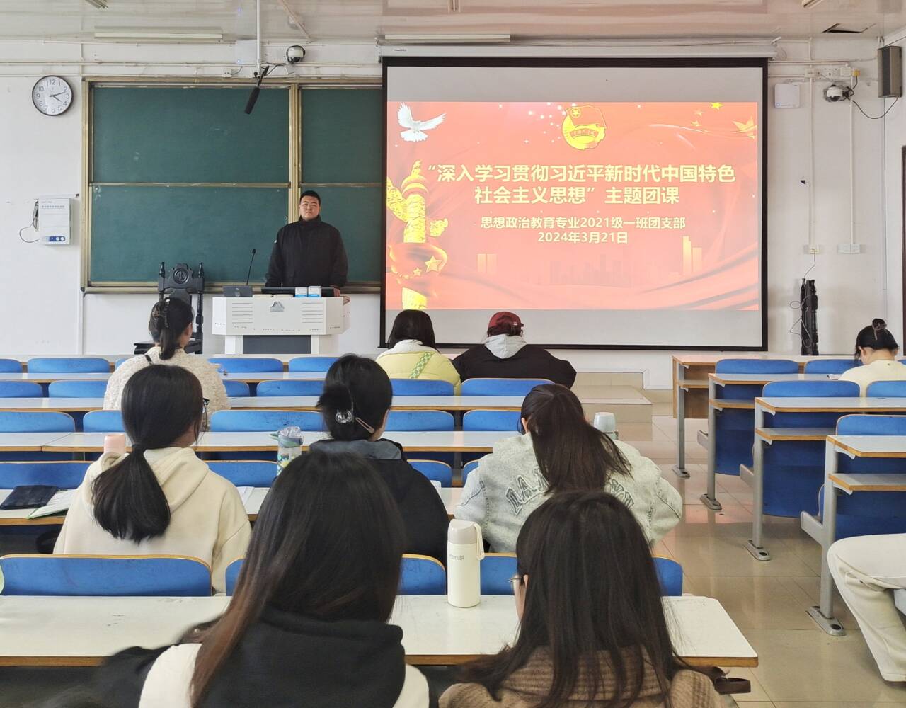 3月21日下午,永利集团官网2021级思想政治教育一班在社科楼514教室召开“深入学习贯彻习近平新时代中国特色社会主义思想”主题团课。2021级思想政治教育一班全体团员参加此次团课。团课由团支书戴翰林主持。