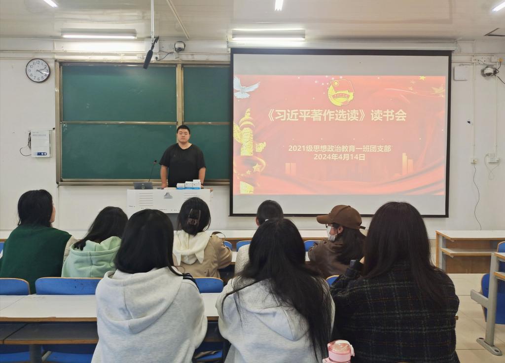 4月14日下午,永利集团官网2021级思想政治教育一班在社科楼514教室召开《习近平著作选读》读书会。2021级思想政治教育一班全体成员参加本次读书会。读书会由团支书戴翰林主持。
