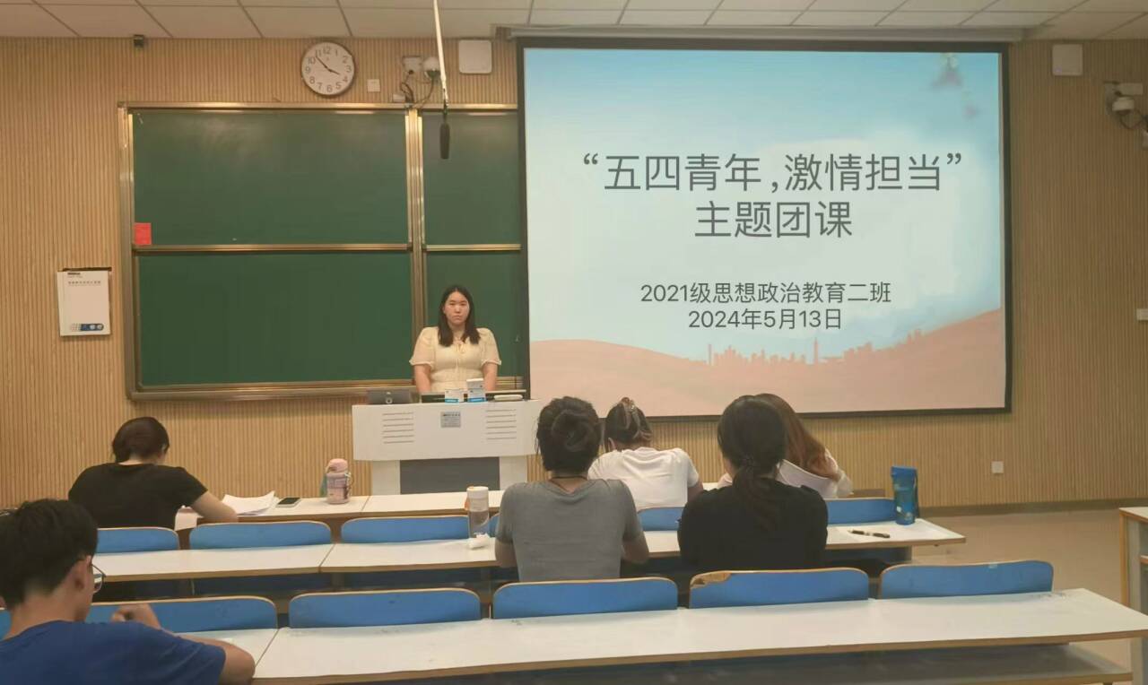 5月13日下午,永利集团官网2021级思想政治教育二班在社科楼514教室召开“五四青年,激情担当”主题团课。2021级思想政治教育二班全体团员参加此次团课。团课由团支书王婧欣主持。