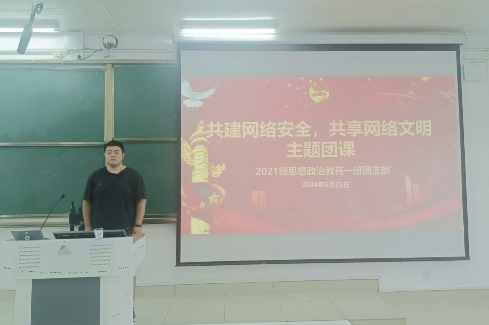 为进一步增强学生的网络安全意识,提升学生明辨是非的能力,5月25日上午,永利集团官网2021级思想政治教育一班在社科楼514教室召开“共建网络安全,共享网络文明”主题团课。2021级思想政治教育一班全体团员参加此次。团课由团支书戴翰林主持。