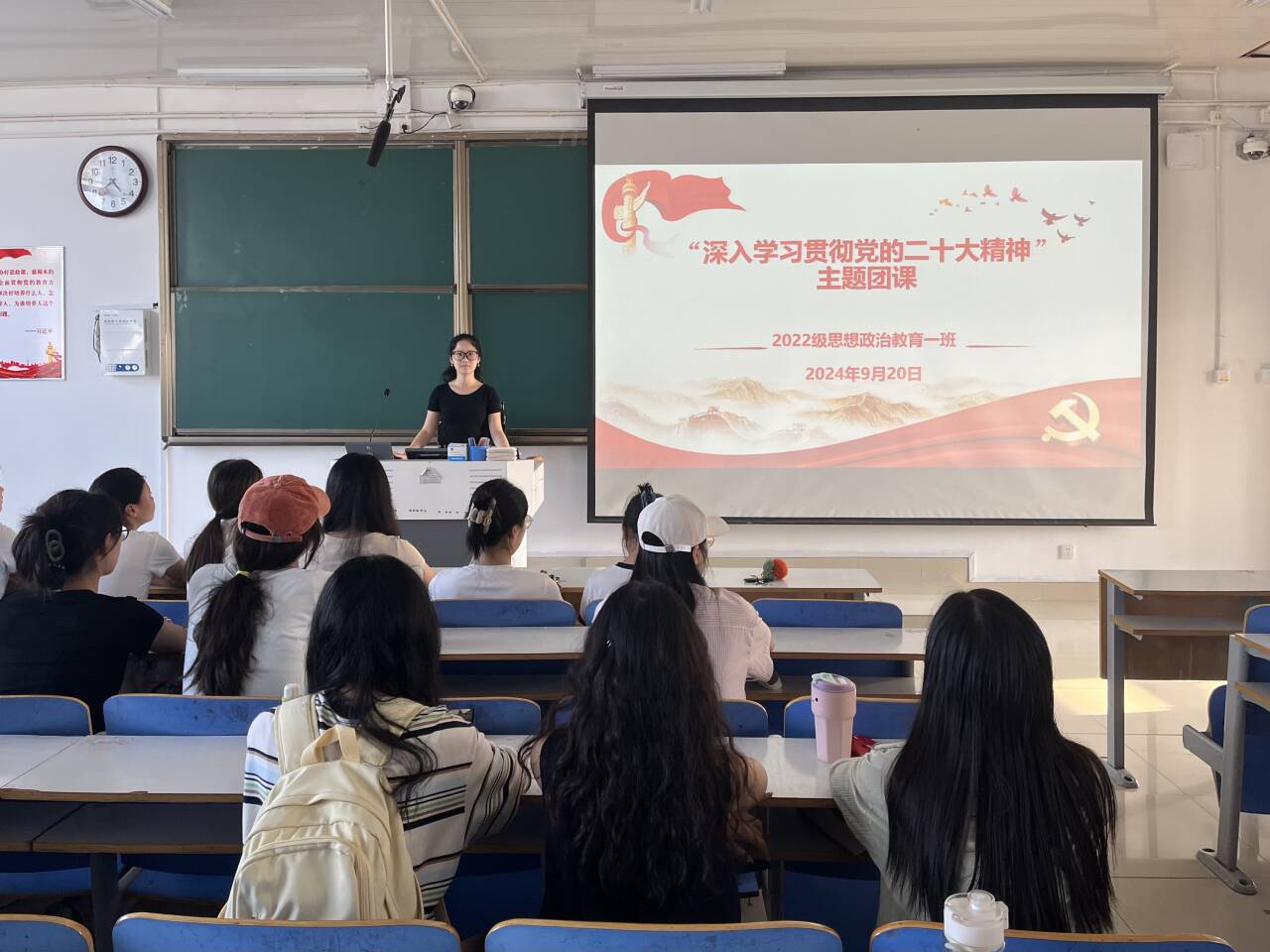 9月20日下午,永利集团官网2022级思想政治教育一班在社科楼514教室召开“深入学习贯彻党的二十大精神”主题团课,永利集团官网2022级思想政治教育一班全体同学共同参与本次团课,团课由团支书李佳茹主持。