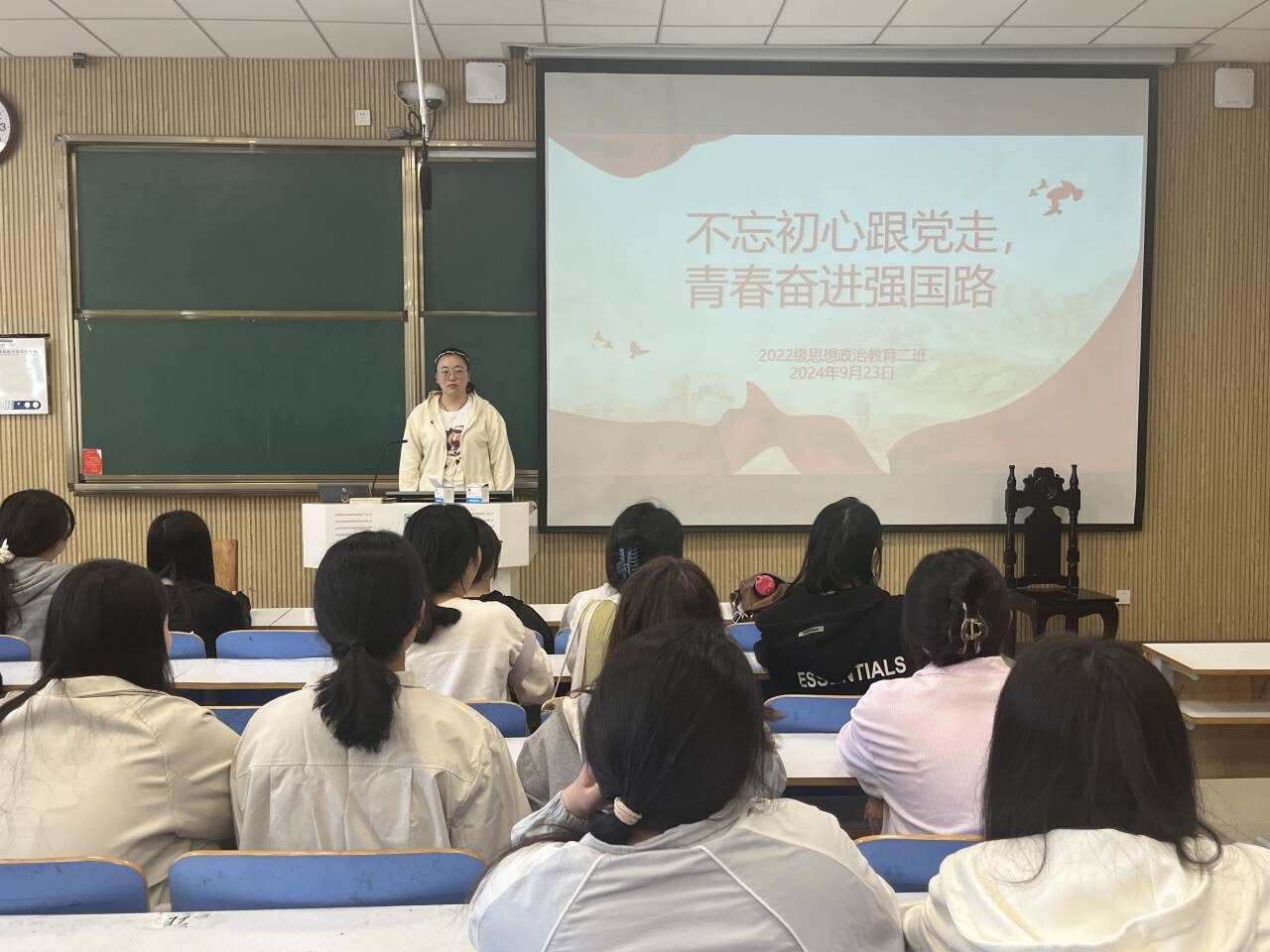9月23日上午,永利集团官网2022级思想政治教育二班在社科楼515教室开展“不忘初心跟党走,青春奋进强国路”主题团课。永利集团官网2022级思想政治教育二班全体成员共同参与此次团课。团课由团支书李佳音主持。