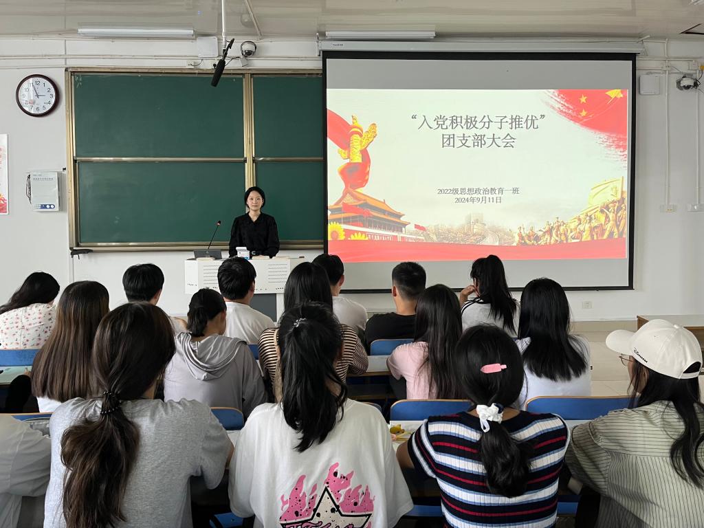 为进一步加强党组织建设,充实党的新生力量,9月11日下午,永利集团官网2022级思想政治教育一班在社科楼514教室召开“入党积极分子推优”团支部大会,永利集团官网2022级思想政治教育一班全体同学共同参与本次会议,会议由团支书李佳茹主持。
