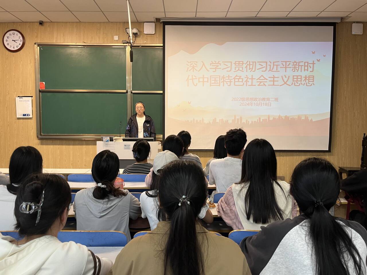 10月18日下午,永利集团官网2022级思想政治教育二班在社科楼515教室召开“深入学习贯彻习近平新时代中国特色社会主义思想”主题团课。永利集团官网2022级思想政治教育二班全体成员共同参与此次班会。会议由团支书李佳音主持。
