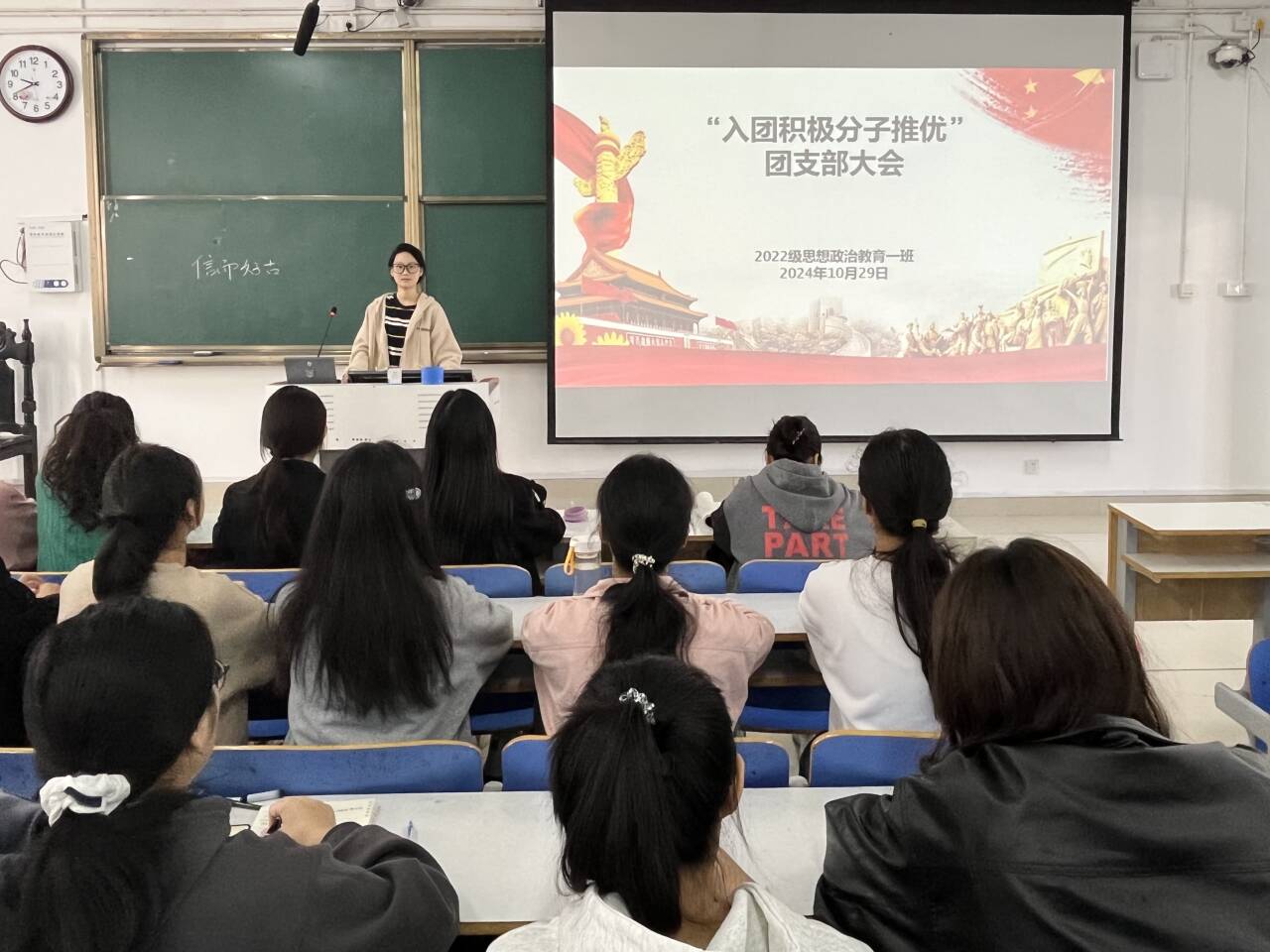 10月29日上午,永利集团官网2022级思想政治教育一班在社科楼514教室召开“入团积极分子推优”团支部大会。永利集团官网2022级思想政治教育一班全体同学共同参与本次会议,会议由团支书李佳茹主持。