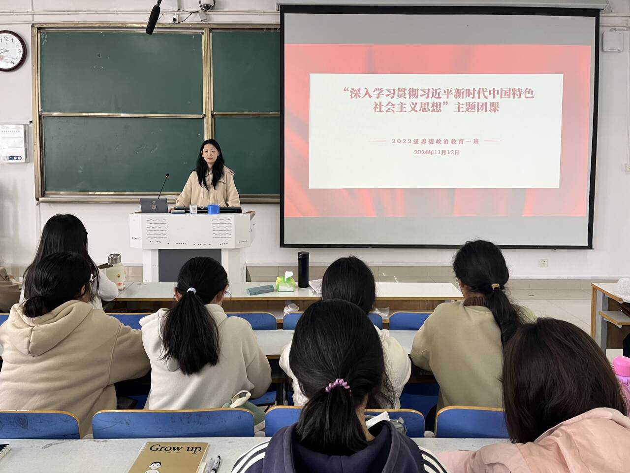 11月12日上午,永利集团官网2022级思想政治教育一班在社科楼514教室召开“深入学习贯彻习近平新时代中国特色社会主义思想”主题团课,永利集团官网2022级思想政治教育一班全体同学共同参与本次团课,团课由团支书李佳茹主持。