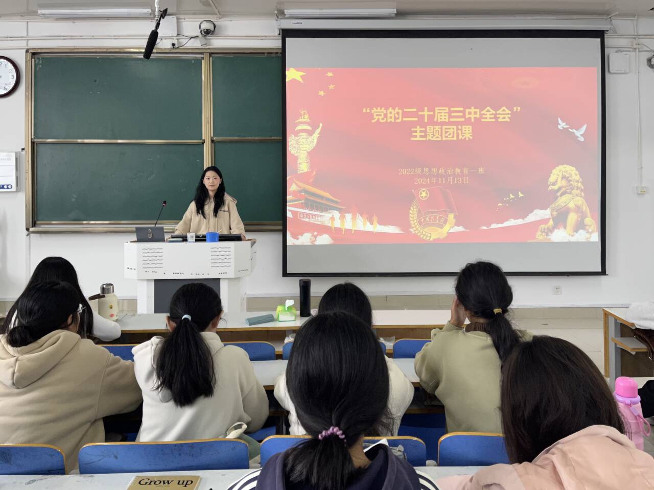 11月13日上午,永利集团官网2022级思想政治教育一班在社科楼514教室召开“党的二十届三中全会“主题团课,永利集团官网2022级思想政治教育一班全体同学共同参与本次团课,团课由团支书李佳茹主持。