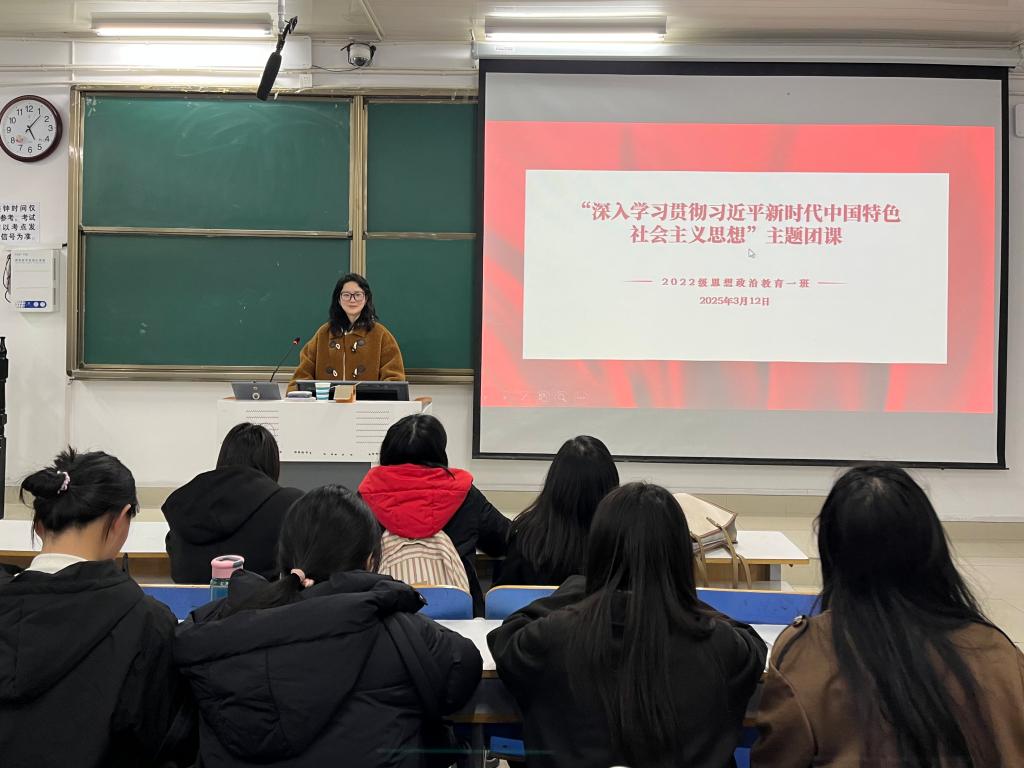 为加强对共青团员的政治锻造,进一步学习领会习近平新时代中国特色社会主义思想,3月12日下午,永利集团官网2022级思想政治教育一班在社科楼514教室开展“深入学习贯彻习近平新时代中国特色社会主义思想”团课,永利集团官网2022级思想政治教育一班全体同学共同参与本次团课,团课由团支书李佳茹主持。