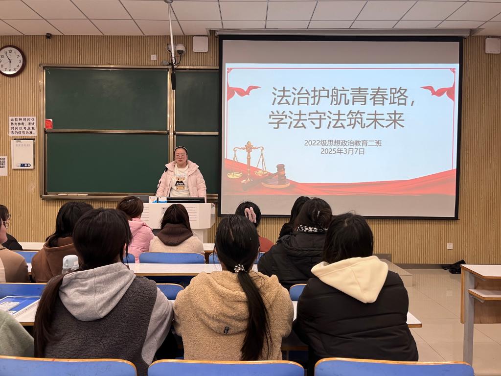为增强大学生法治观念,筑牢校园安全防线,3月7日下午,永利集团官网2022级思想政治教育二班在社科楼515教室召开“法治护航青春路,学法守法筑未来”主题班会。永利集团官网2022级思想政治教育二班全体成员共同参与此次班会。会议由班长李佳音主持。